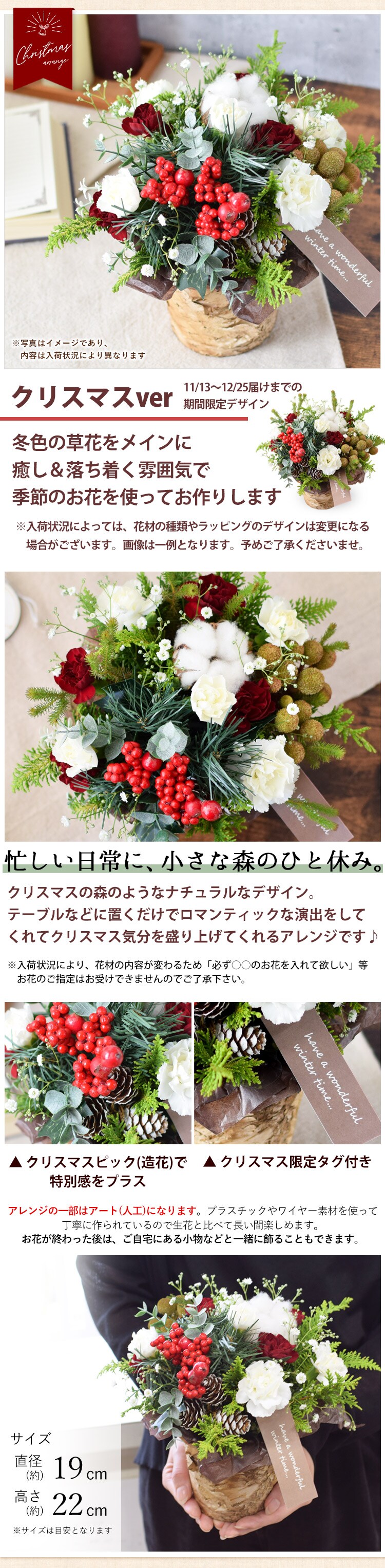 [11/14~12/25届]季節のおまかせ生花アレンジメント ロゼッタ 「クリスマスver」【手提げ袋付】※北海道・沖縄はお届け不可 花由