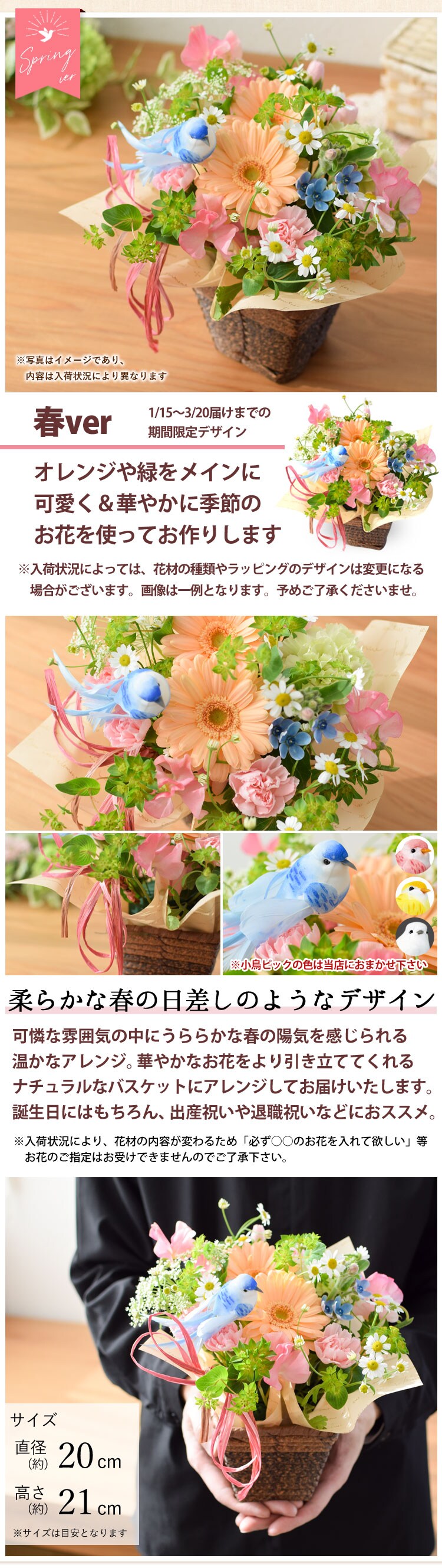 [1/15~3/20届] 季節のおまかせ生花アレンジメント ロゼッタ「春ver」【手提げ袋付】※北海道・沖縄はお届け不可 花由