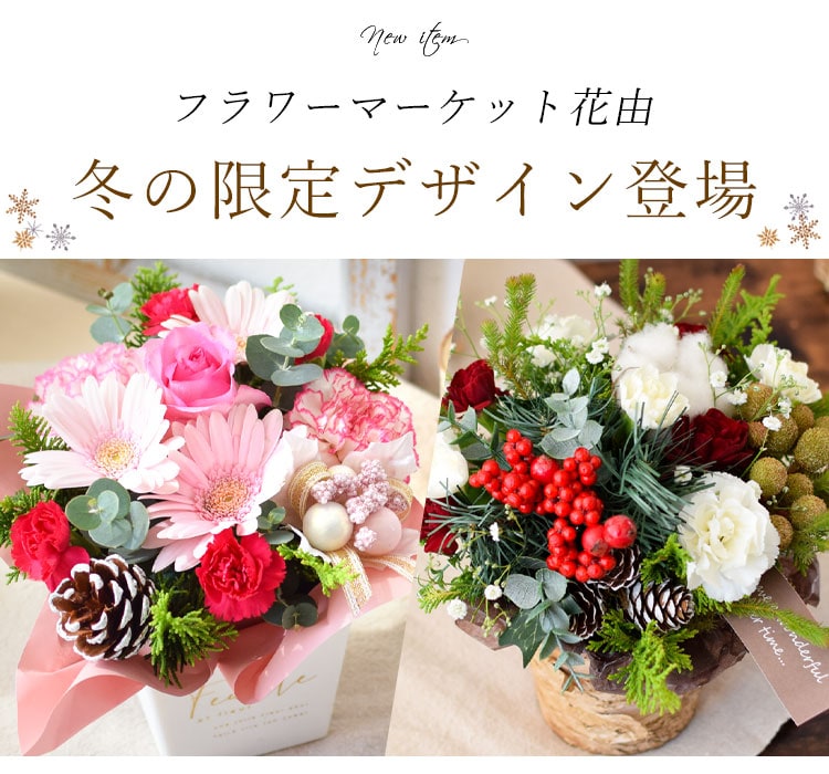 [11/13~12/25届]季節のおまかせ生花アレンジメント ロゼッタ 「冬ver」【手提げ袋付】※北海道・沖縄はお届け不可 花由
