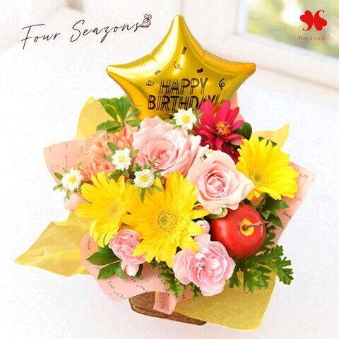 季節のおまかせ生花アレンジメント バルーン Birhday「カラフル」【手提げ袋付】※北海道・沖縄はお届け不可 花由