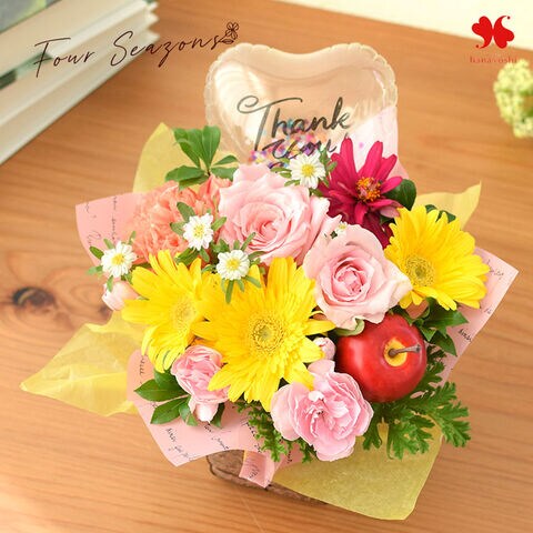 季節のおまかせ生花アレンジメント バルーン Thankyou「カラフル」【手提げ袋付】※北海道・沖縄はお届け不可 花由
