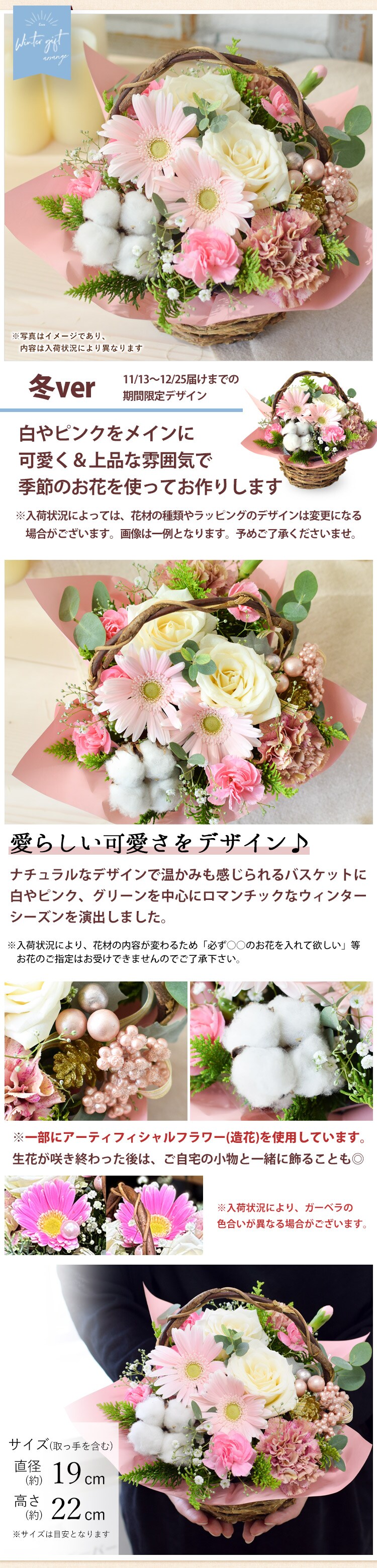 [11/13~12/25届] 季節のおまかせ生花アレンジメント Mサイズ「冬ver」【手提げ袋付】※北海道・沖縄はお届け不可 花由