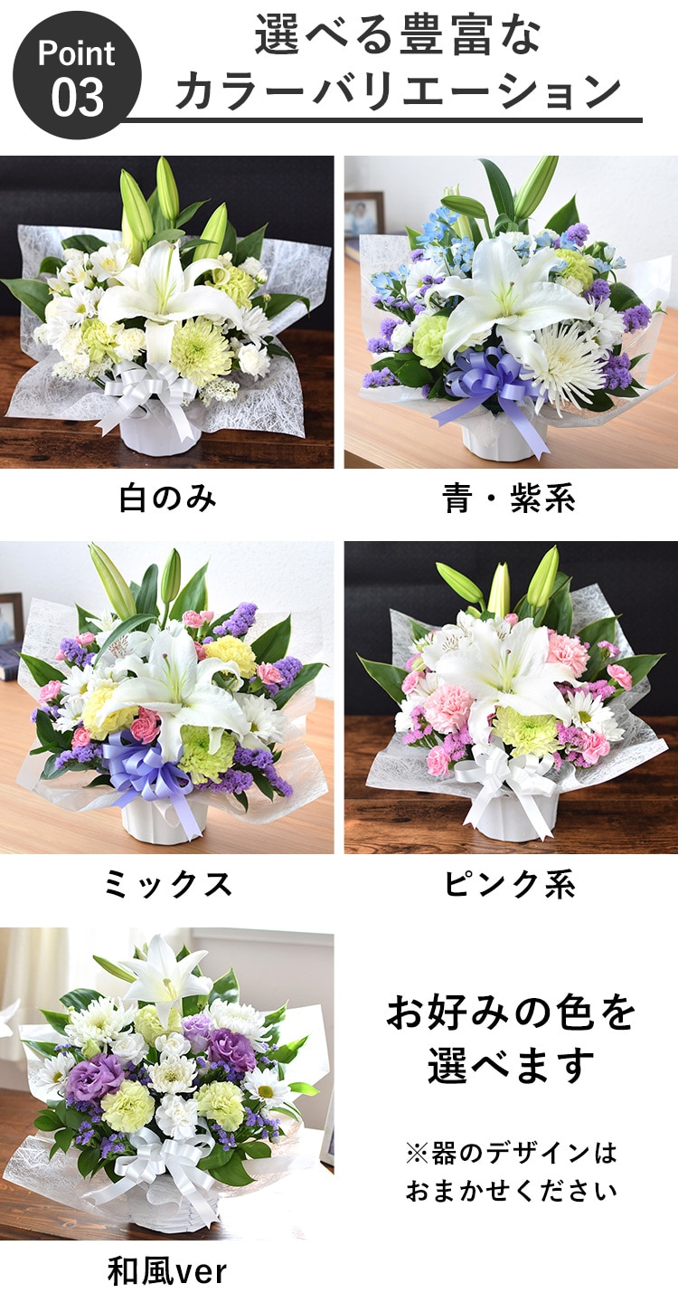お供え生花アレンジメント Sサイズ「白+ミックス」 ※北海道・沖縄はお届け不可 花由