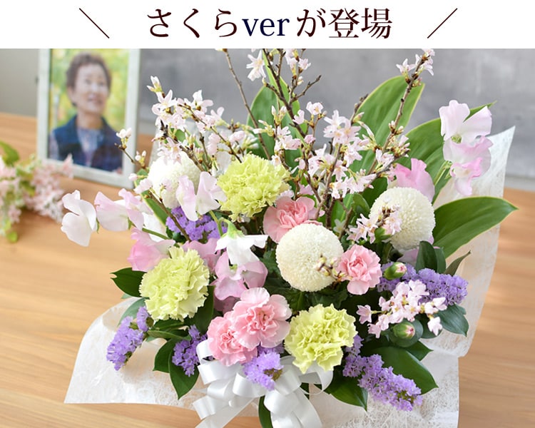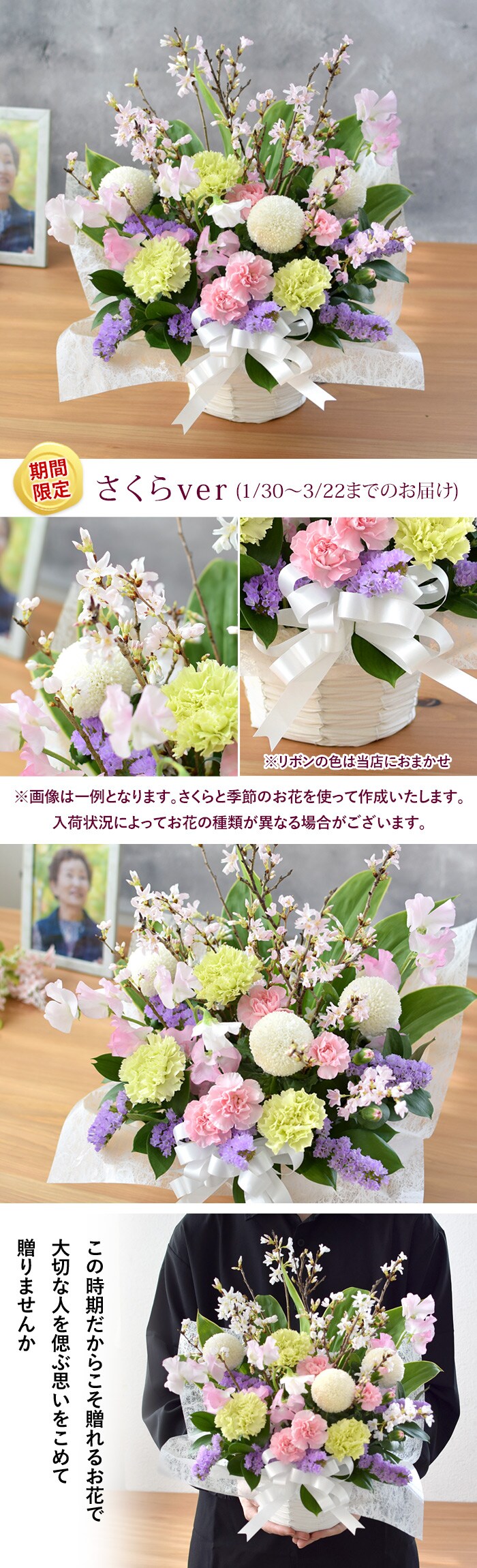 [1/31~3/20届] お供え生花アレンジメント Sサイズ「さくらver」 ※北海道・沖縄はお届け不可 花由