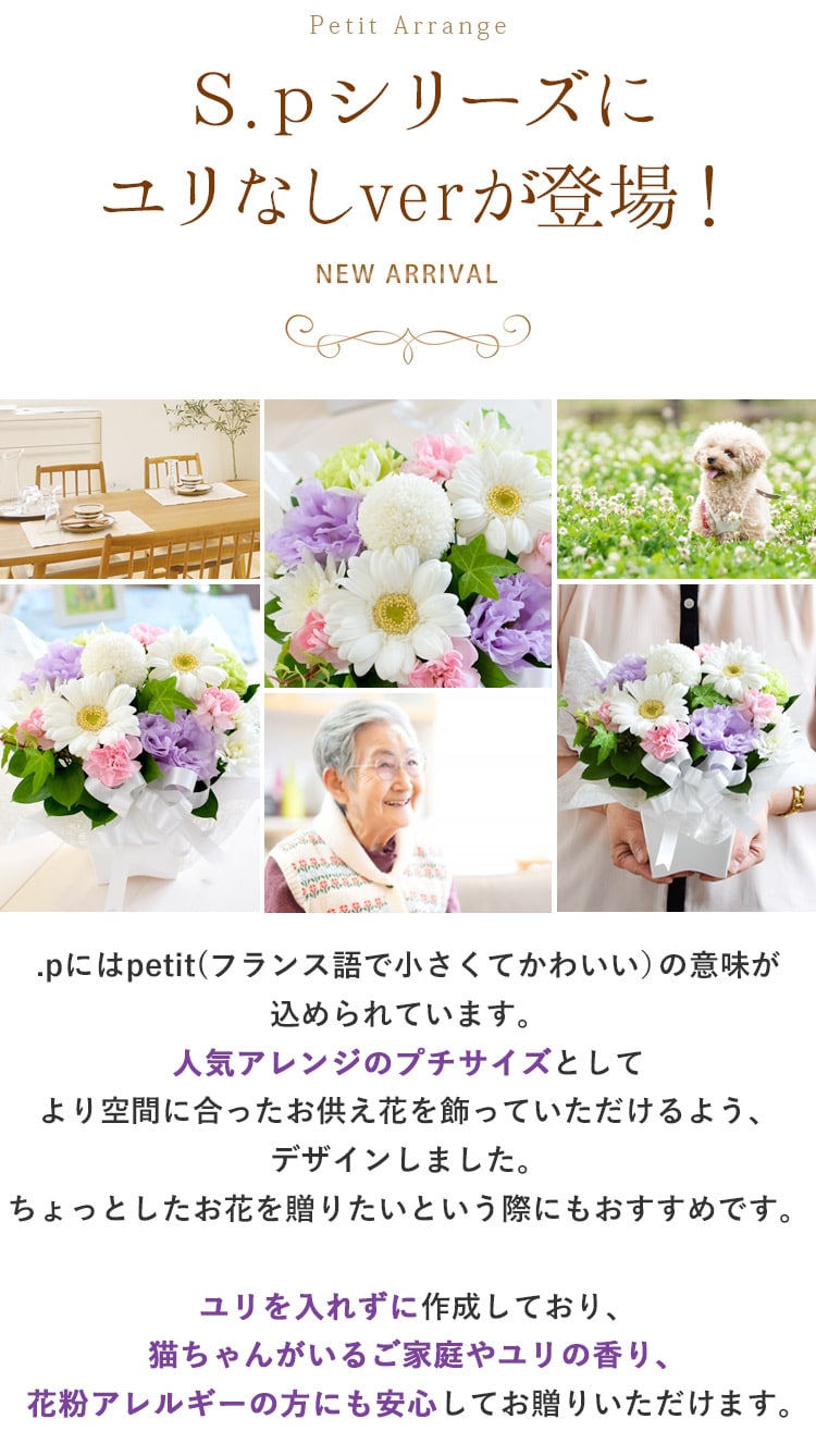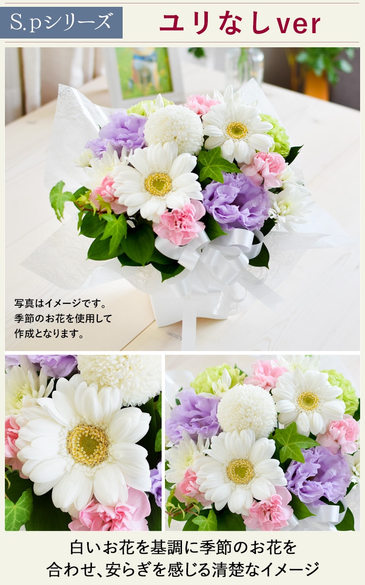 [1/11届~] お供え生花アレンジメント S.pサイズ「ユリなし」※北海道・沖縄はお届け不可 花由