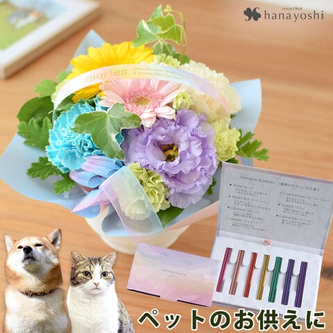 ペットに贈るお供え生花アレンジメント「charite-シャリテ」&7色のお線香セット【手提げ袋付】※北海道・沖縄はお届け不可 花由