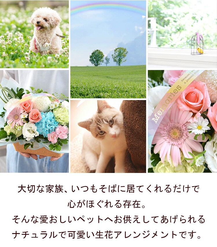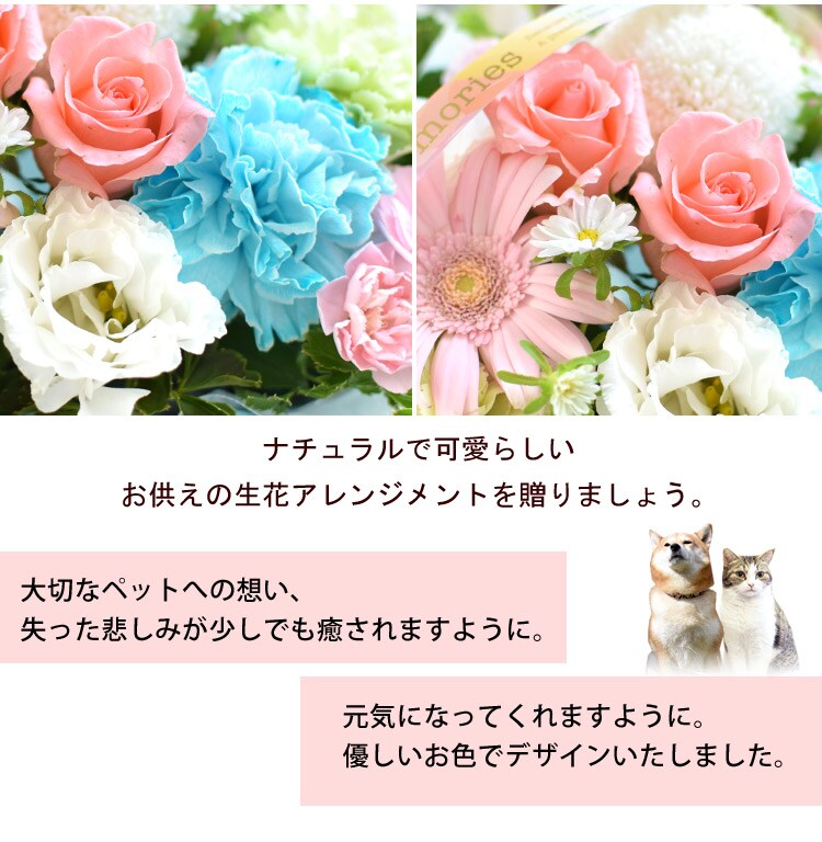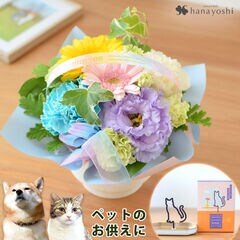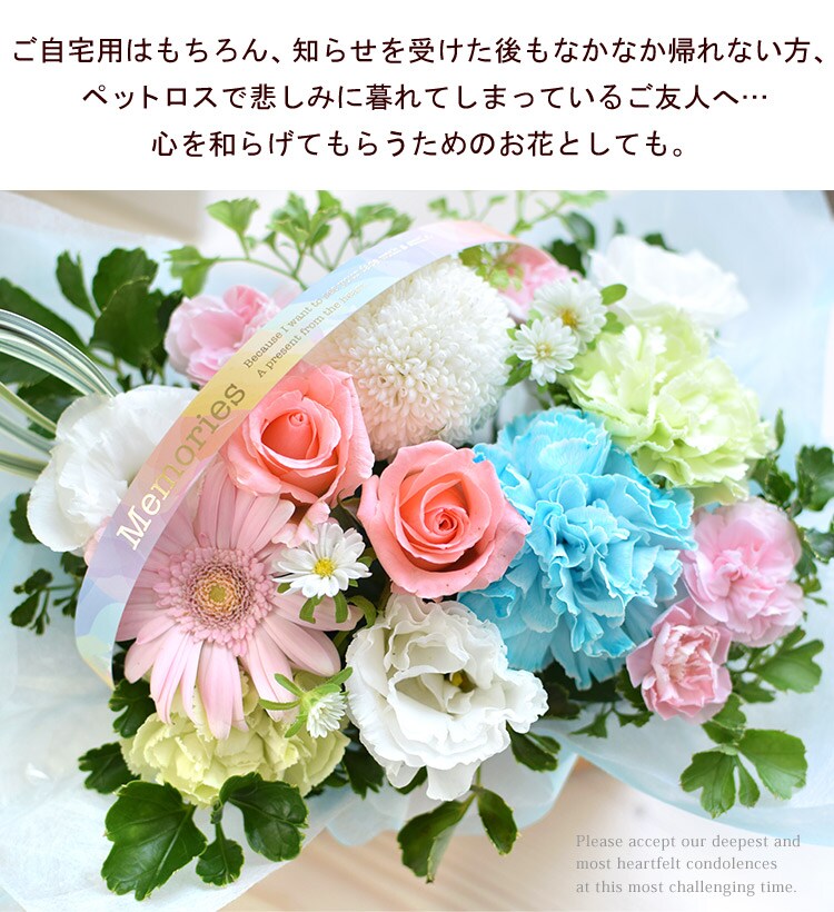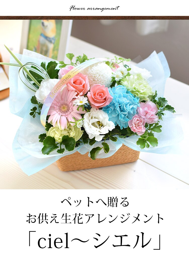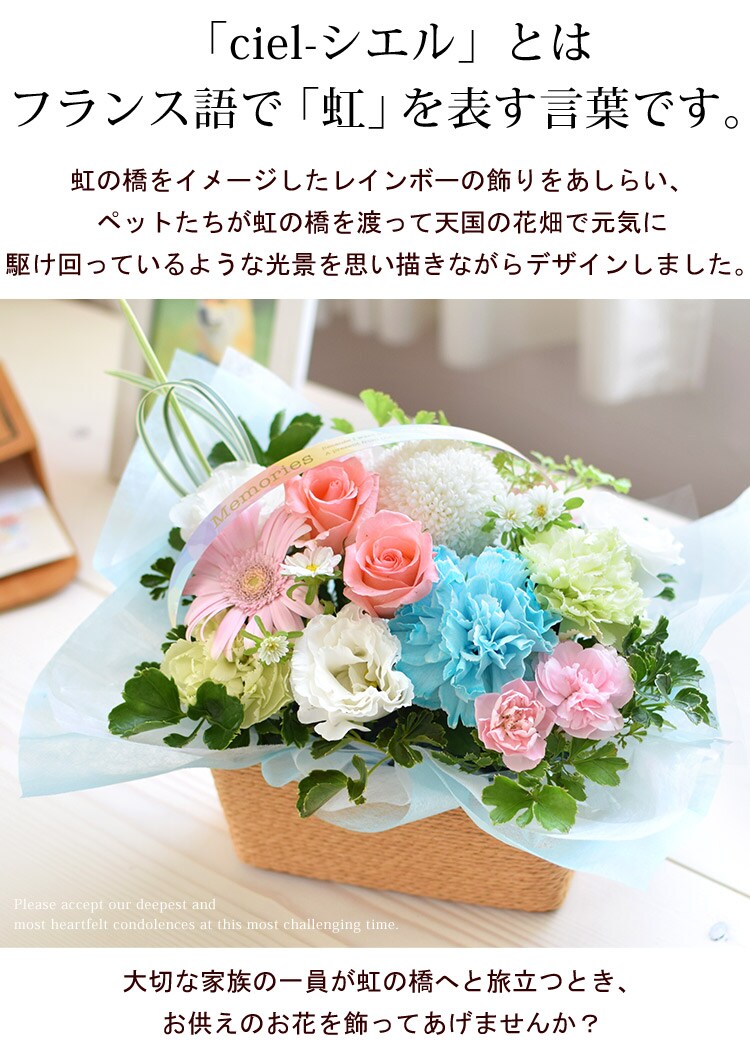 ペットに贈るお供え生花アレンジメント「ciel-シエル」&7色のお線香セット【手提げ袋付】※北海道・沖縄はお届け不可 花由