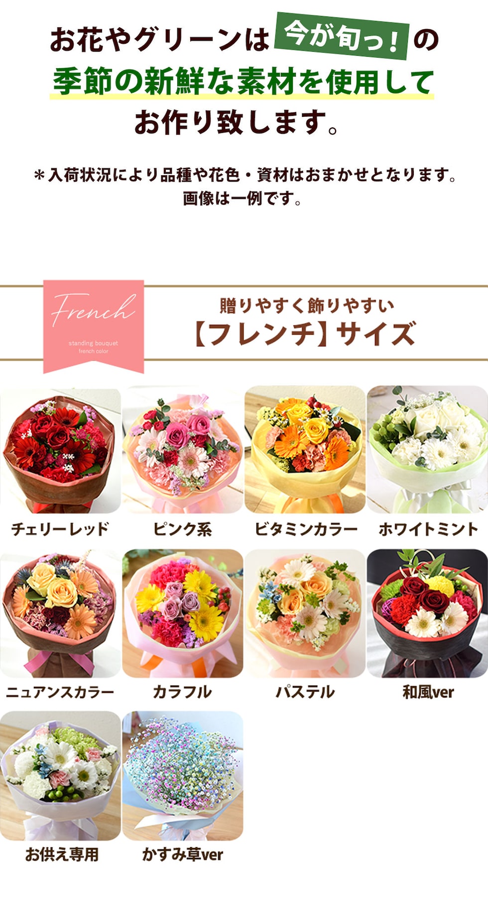 ※入荷状況により、花材・花色・品種・資材は変更になる場合がございます。