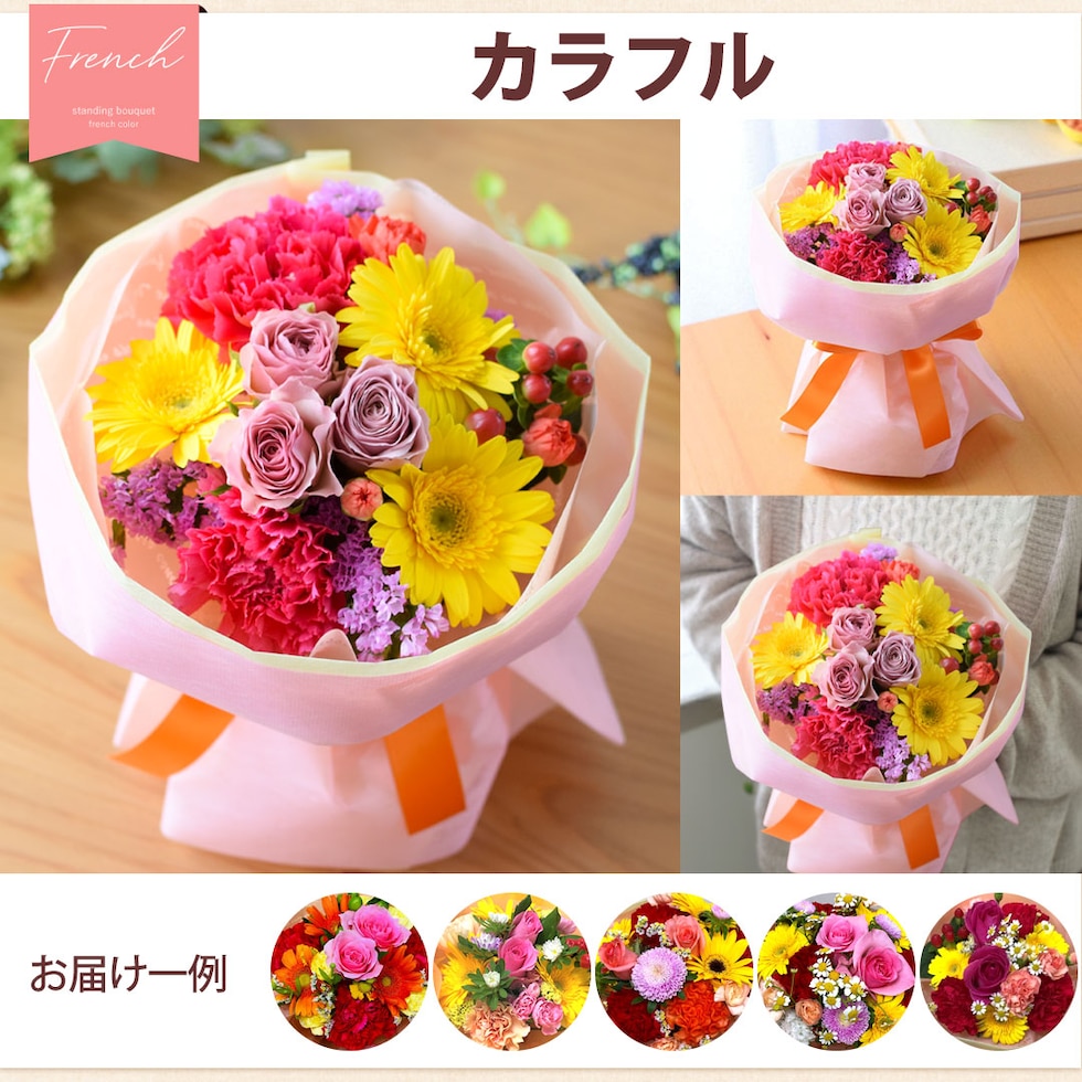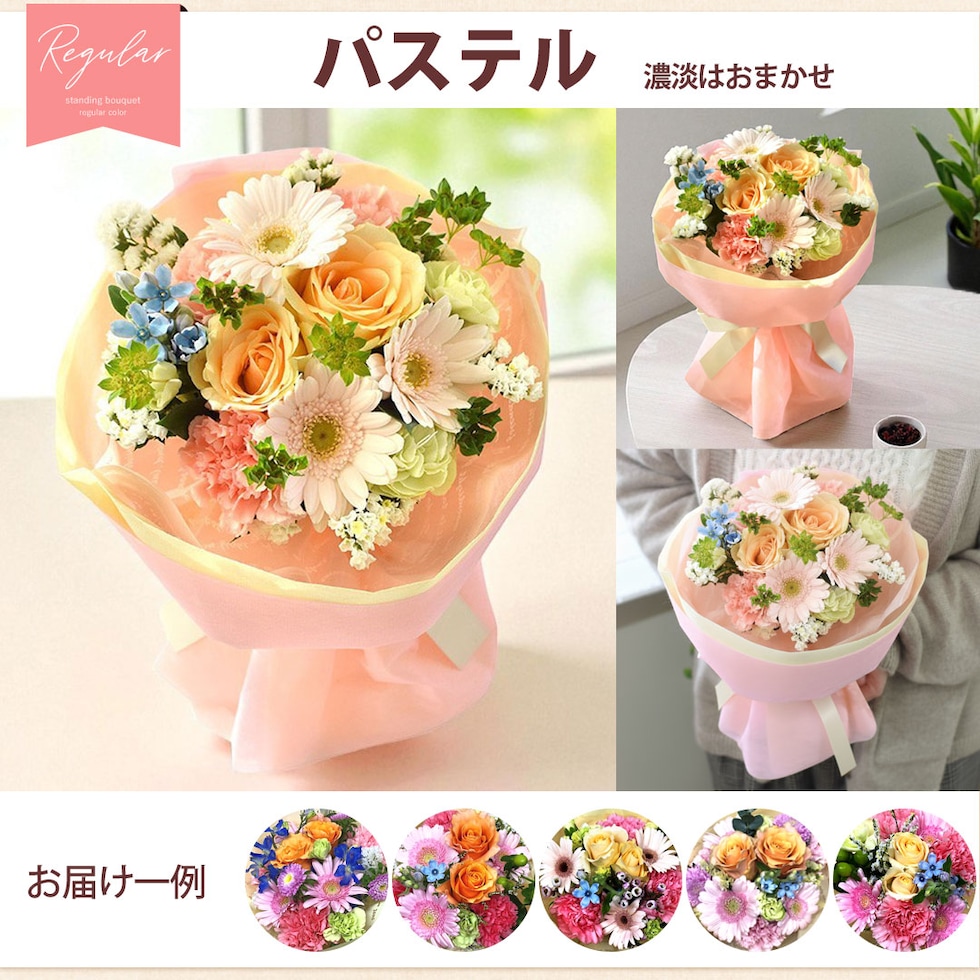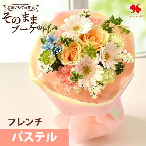 花瓶の要らない花束 そのままブーケ フレンチ「パステル」【手提げ袋付】※北海道・沖縄はお届け不可 花由