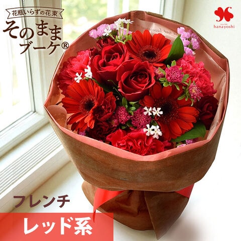 花瓶の要らない花束 そのままブーケ フレンチ「チェリーレッド」【手提げ袋付】※北海道・沖縄はお届け不可 花由