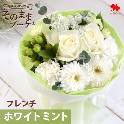 花瓶の要らない花束 そのままブーケ フレンチ「ホワイトミント」【手提げ袋付】※北海道・沖縄はお届け不可 花由
