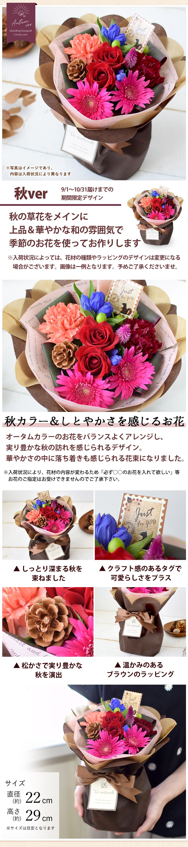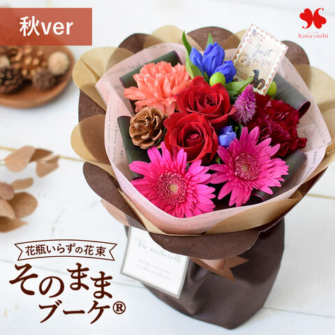 [9/1~10/31届] 花瓶の要らない花束 そのままブーケ フレンチ「秋ver」【手提げ袋付】※北海道・沖縄はお届け不可 花由