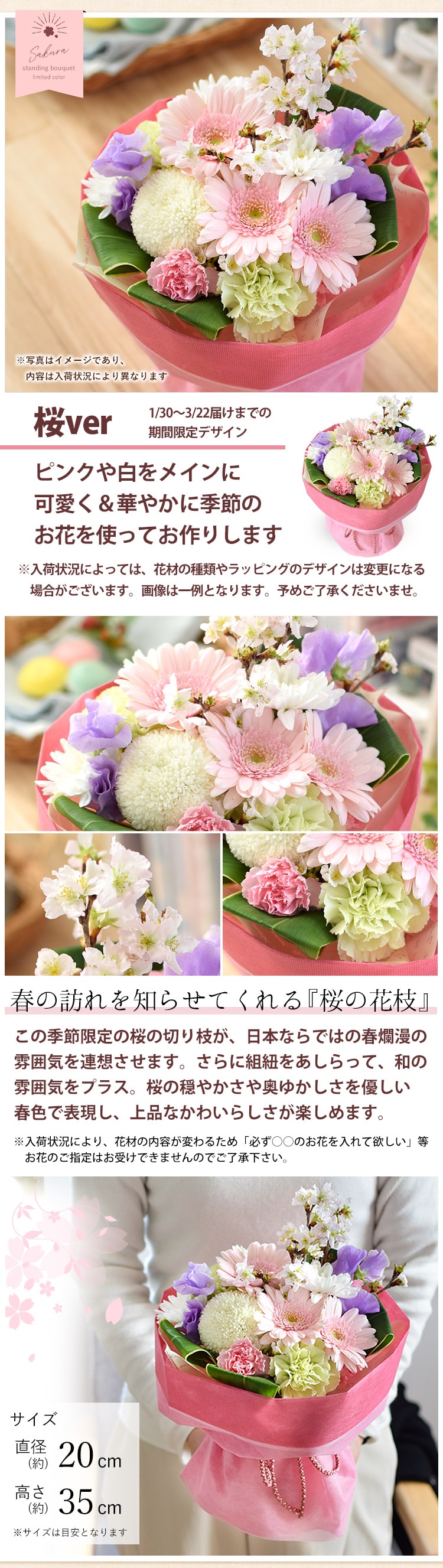 [1/30~3/22届] 花瓶の要らない花束 そのままブーケ 「桜ver」 【手提げ袋付】※北海道・沖縄はお届け不可 花由