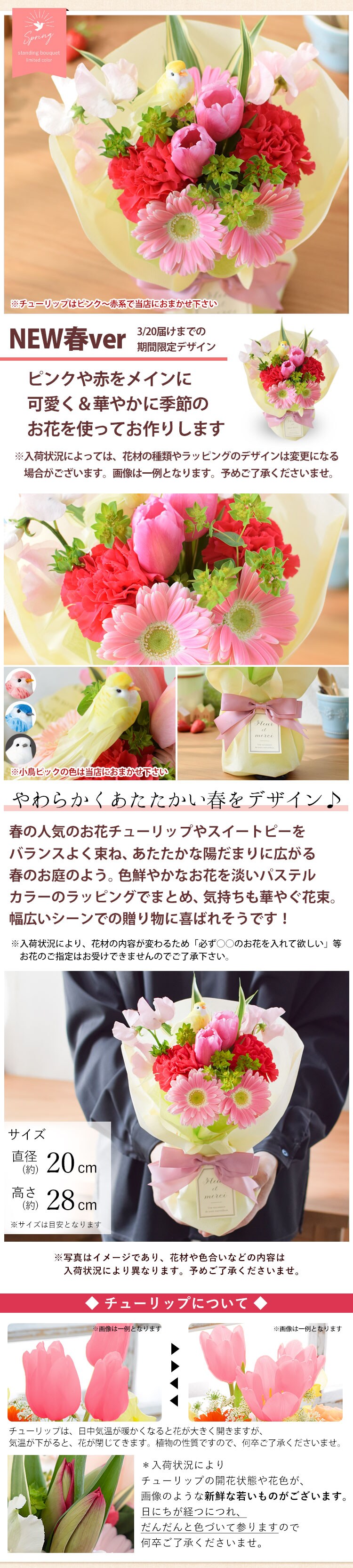[1/27~3/22届]花瓶の要らない花束 そのままブーケ「NEW春ver」【手提げ袋付】※北海道・沖縄はお届け不可 花由