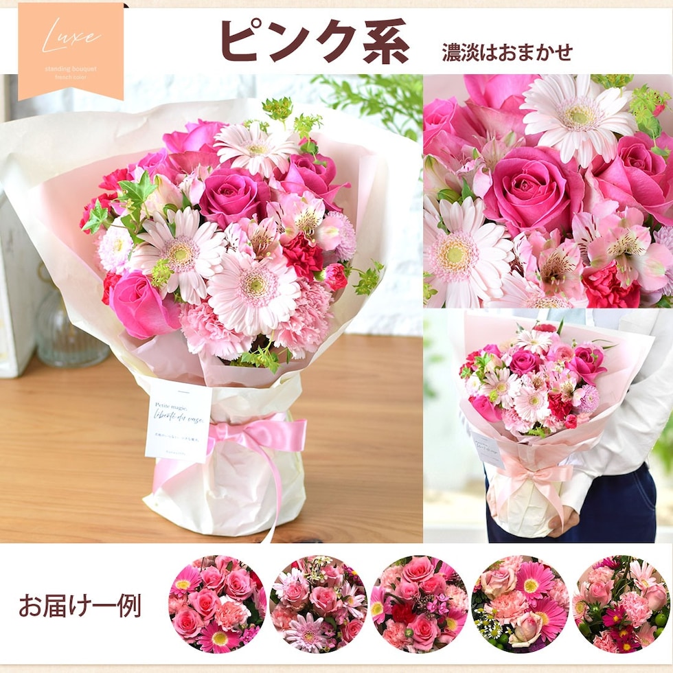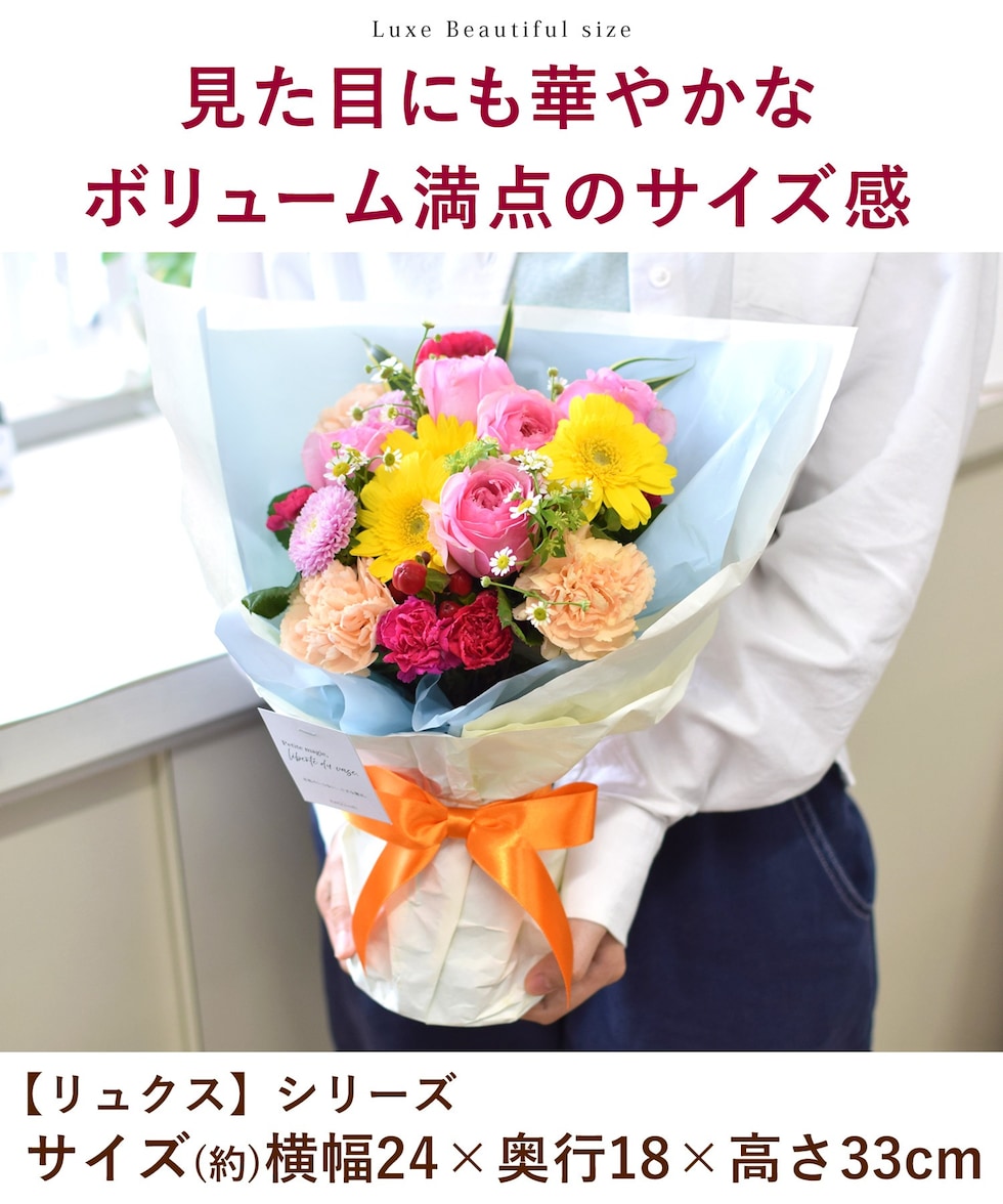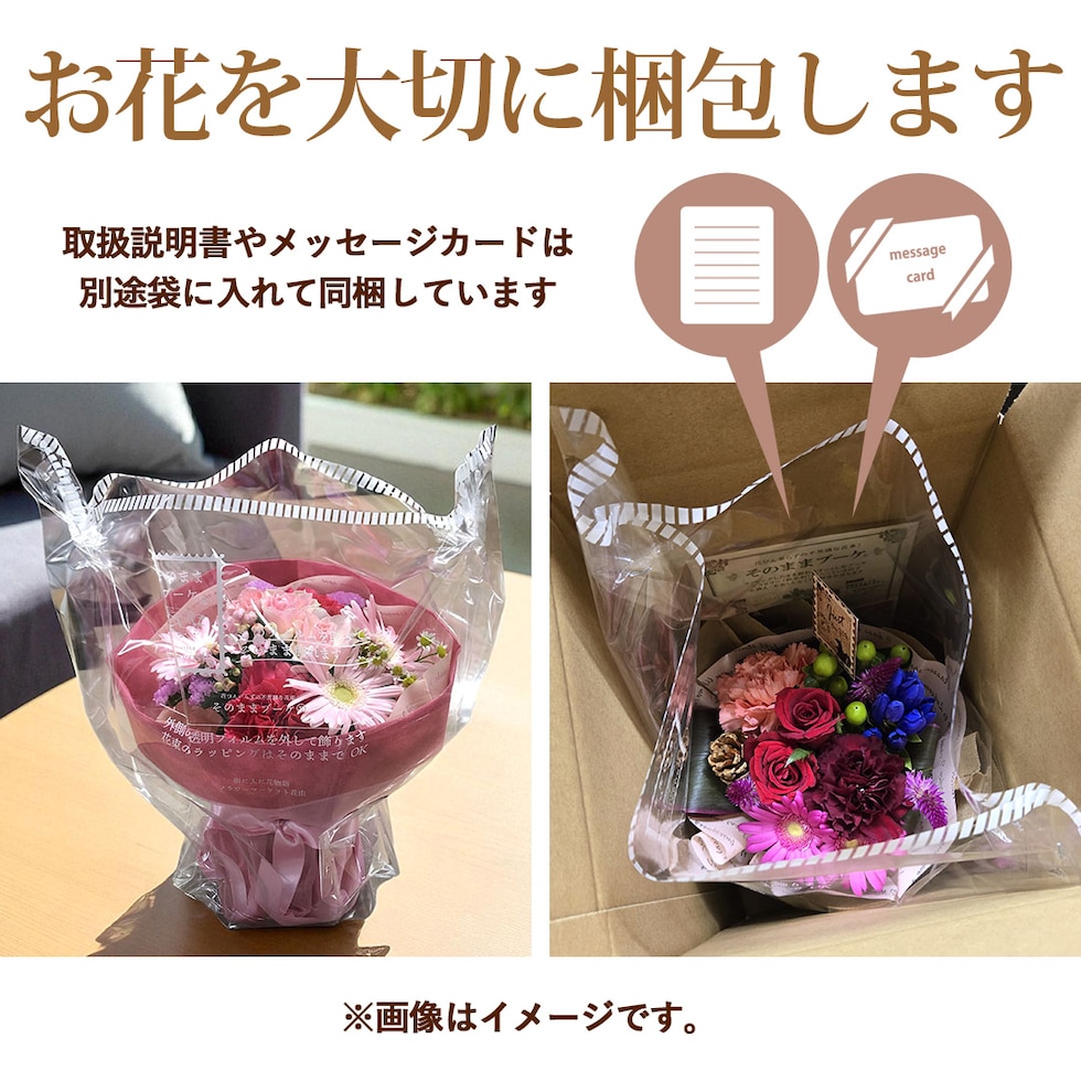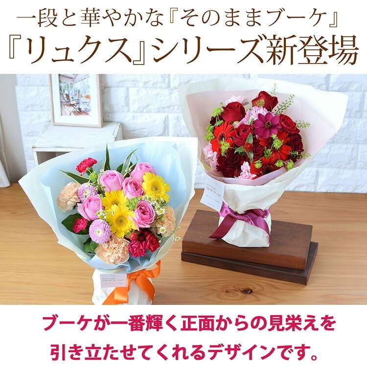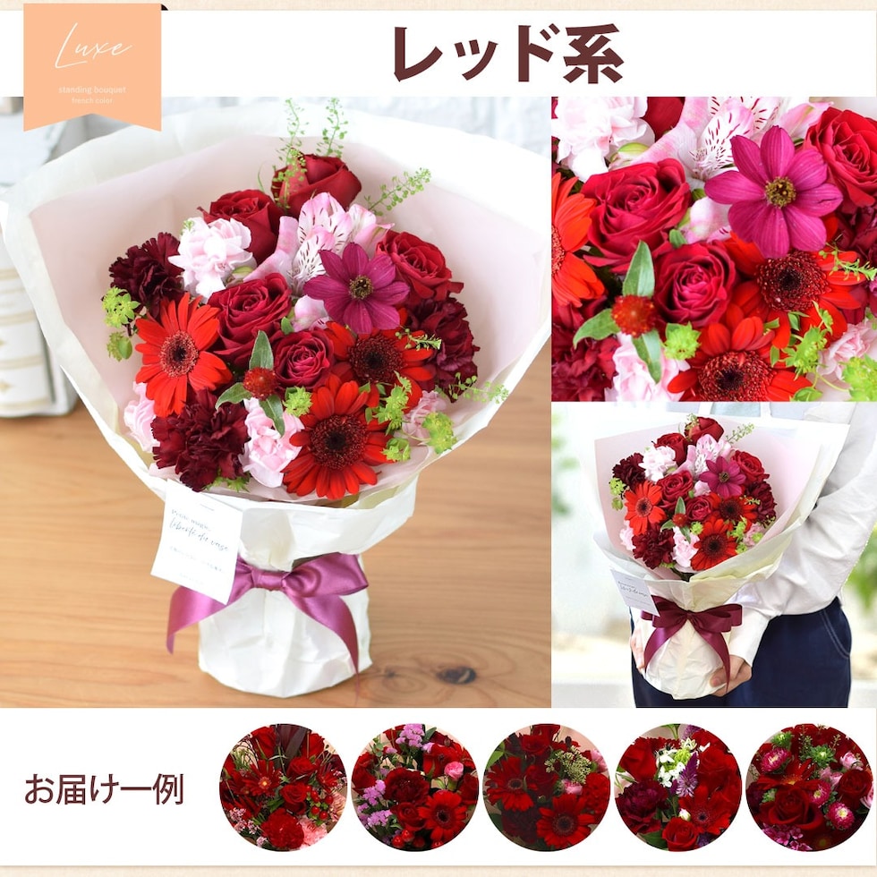 花瓶の要らない花束 そのままブーケ リュクス「レッド系」【手提げ袋付】※北海道・沖縄はお届け不可 花由
