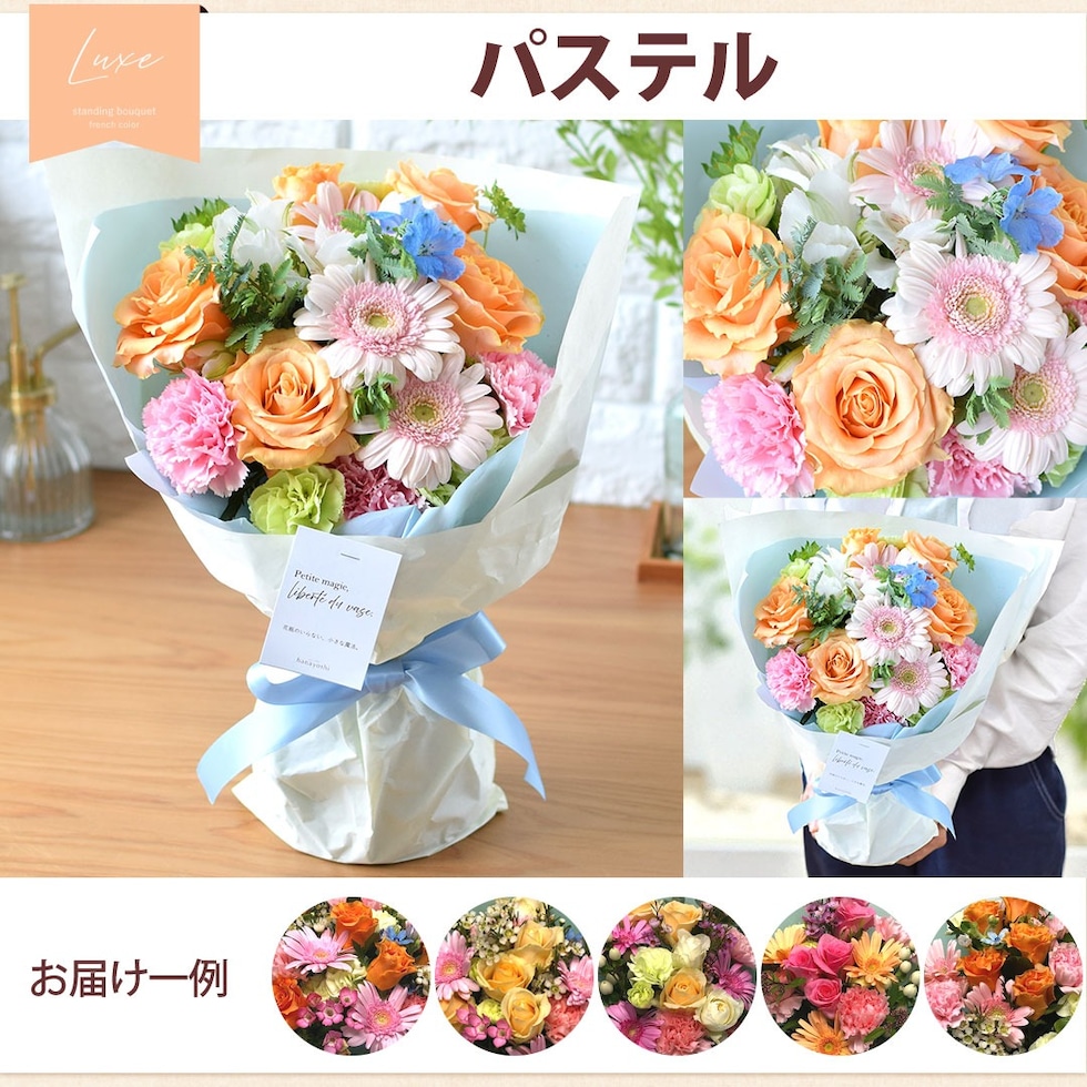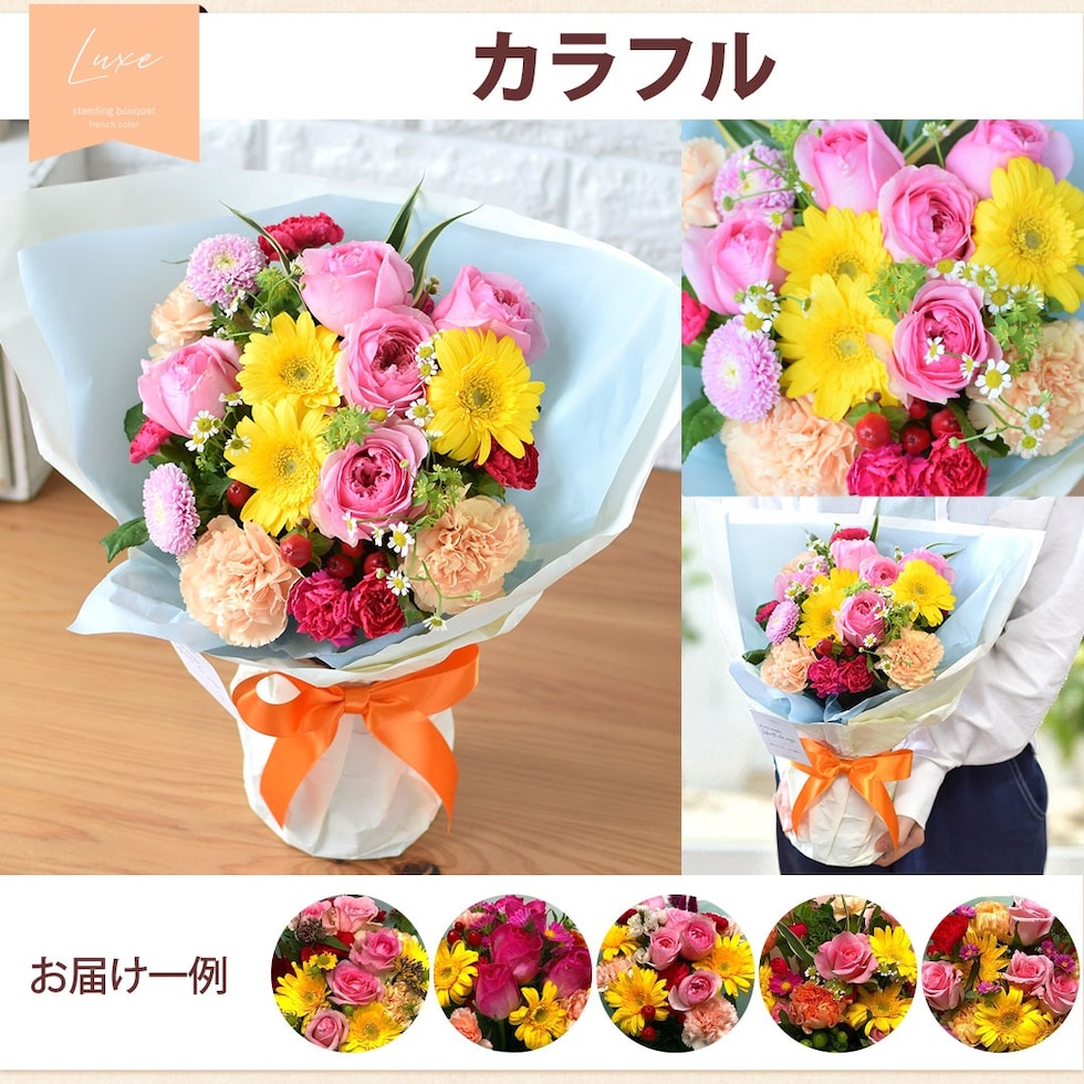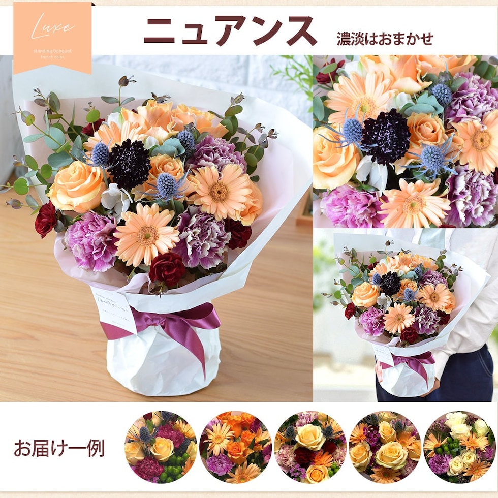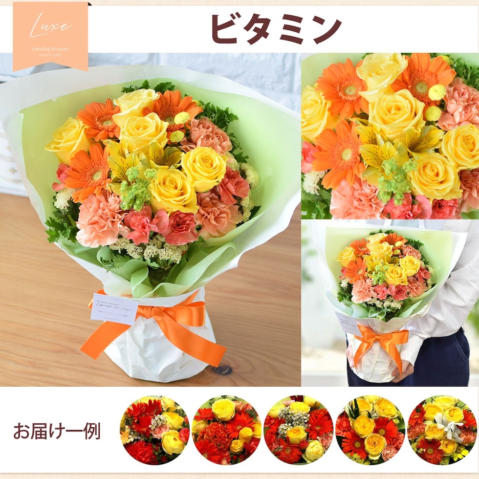 花瓶の要らない花束 そのままブーケ リュクス「レッド系」【手提げ袋付】※北海道・沖縄はお届け不可 花由