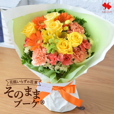 花瓶の要らない花束 そのままブーケ リュクス「ビタミン」【手提げ袋付】※北海道・沖縄はお届け不可 花由