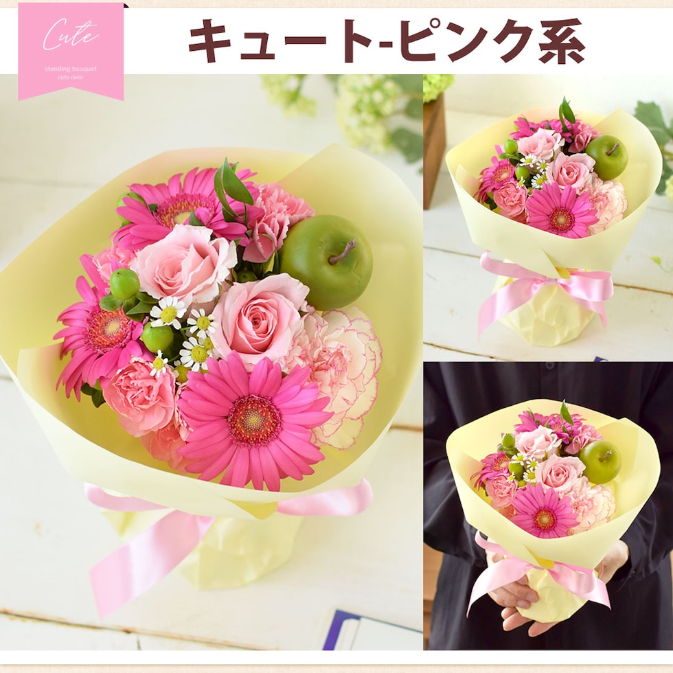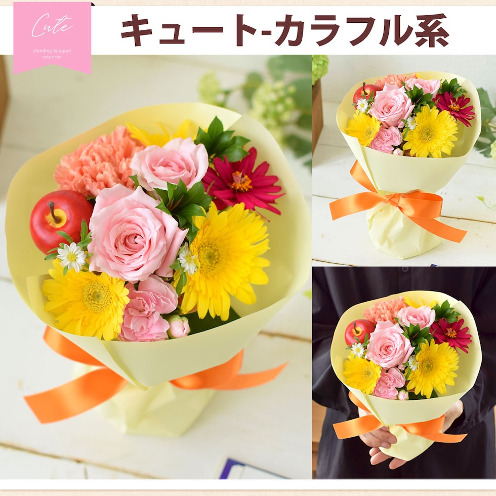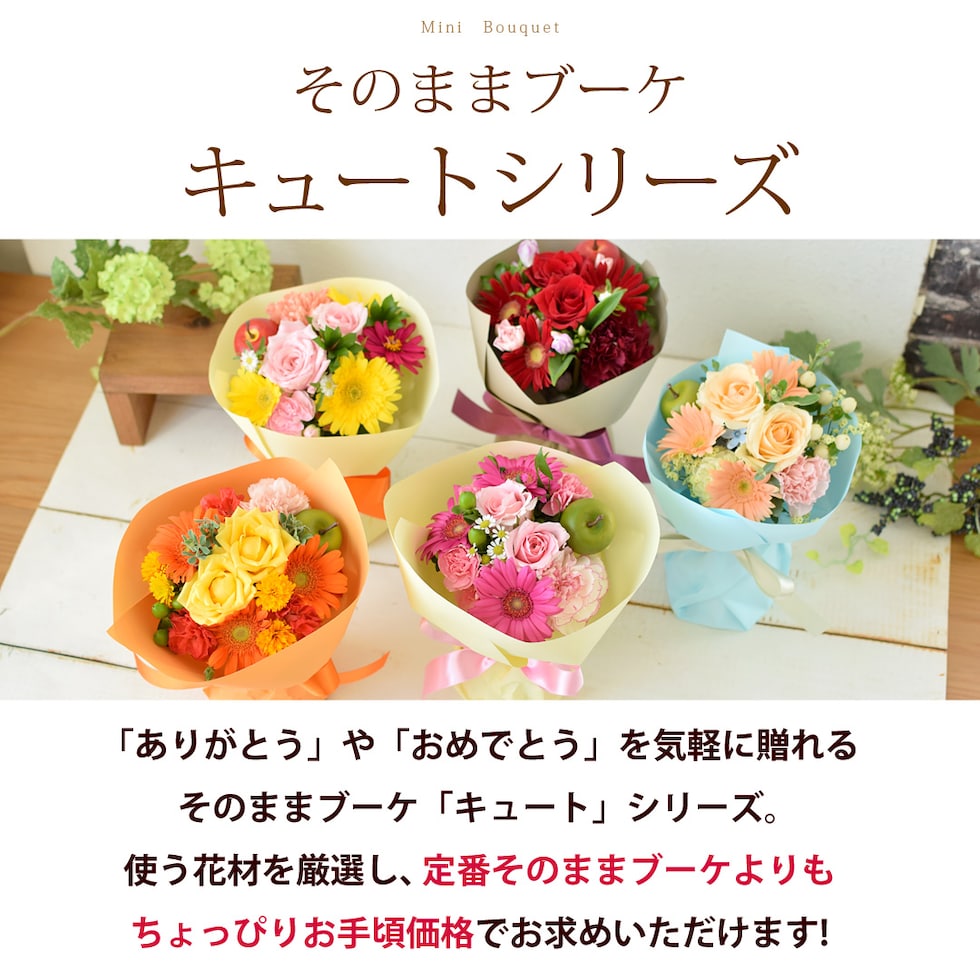 花瓶の要らない花束 そのままブーケ キュート「パステル系」【手提げ袋付】※北海道・沖縄はお届け不可 花由