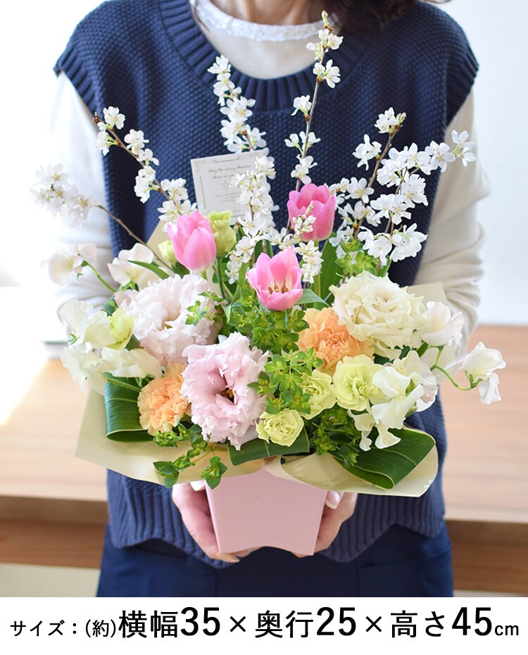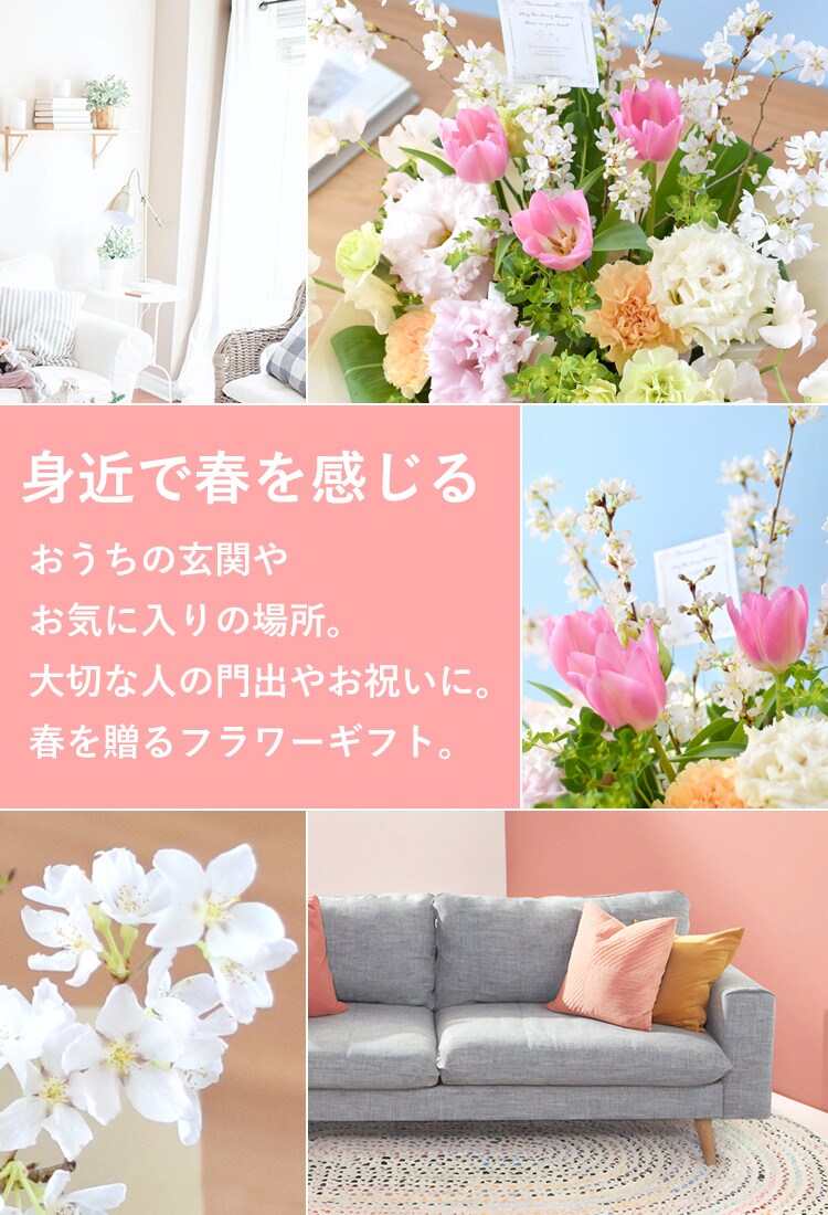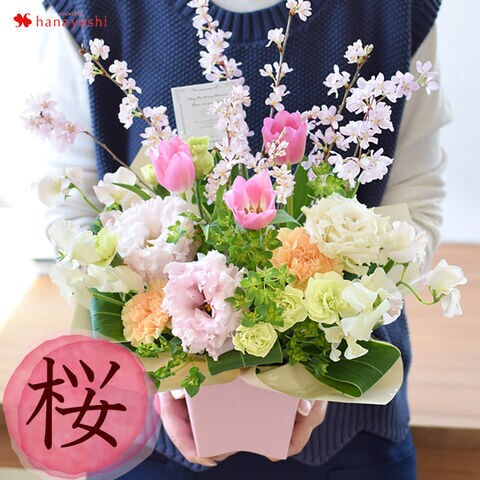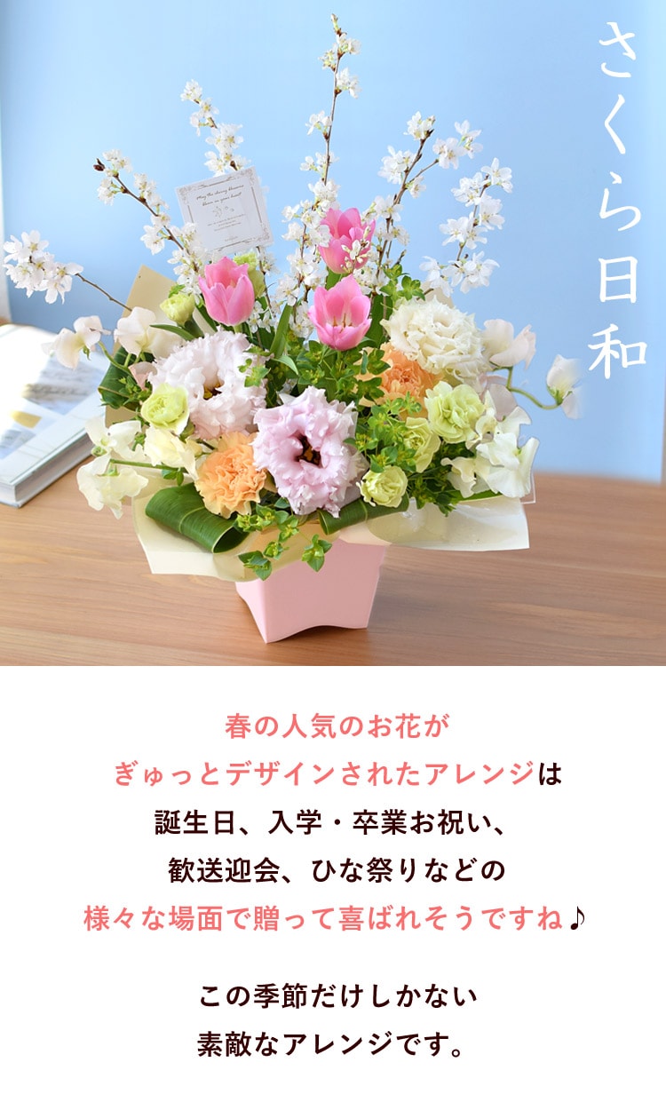 [1/30~3/22届] 季節限定シリーズ 桜と春の花の生花アレンジ「さくら日和」【手提げ袋付】※北海道・沖縄はお届け不可 花由