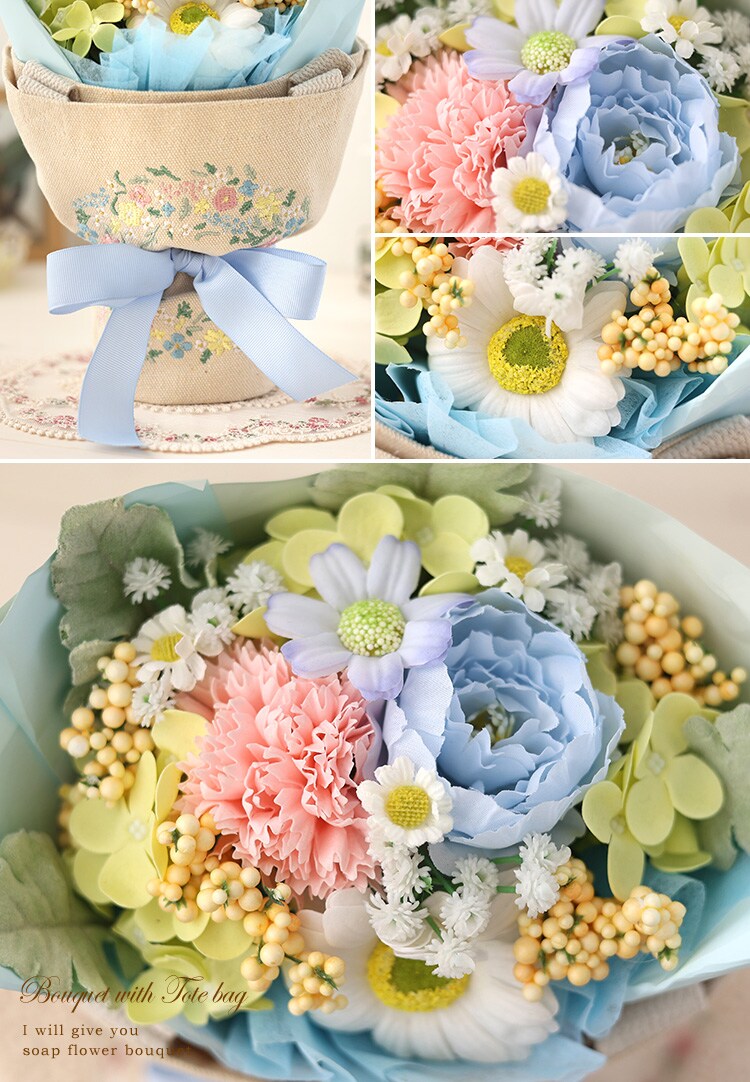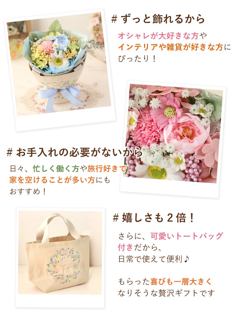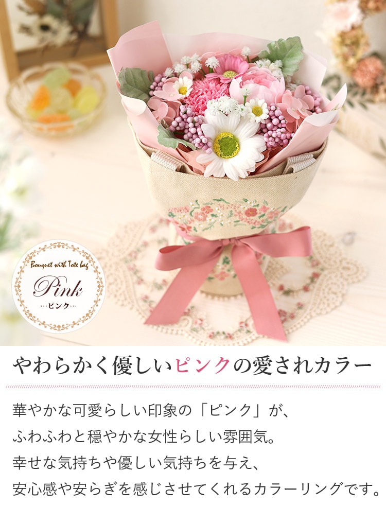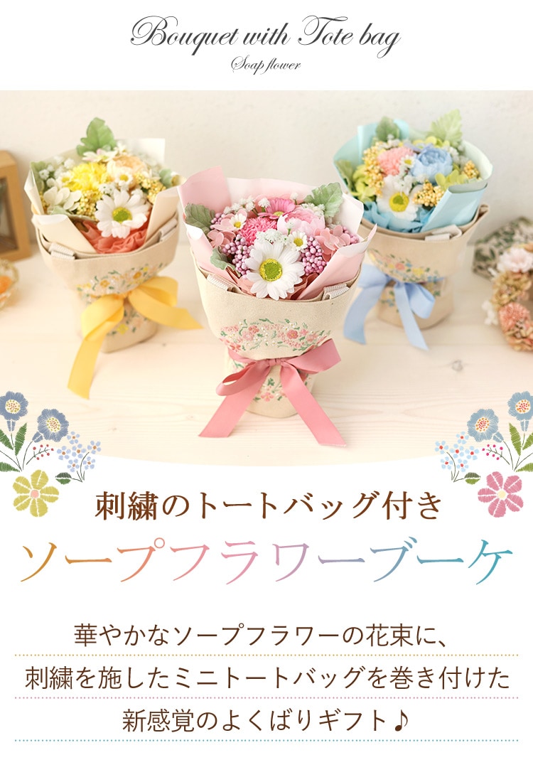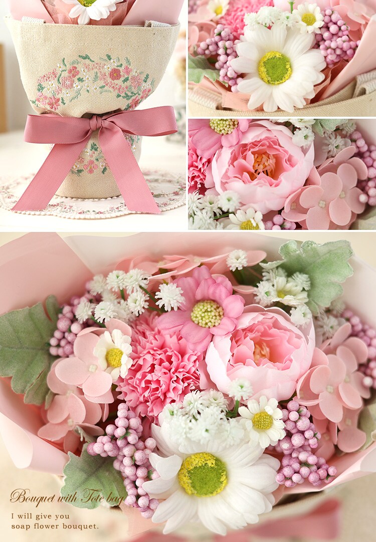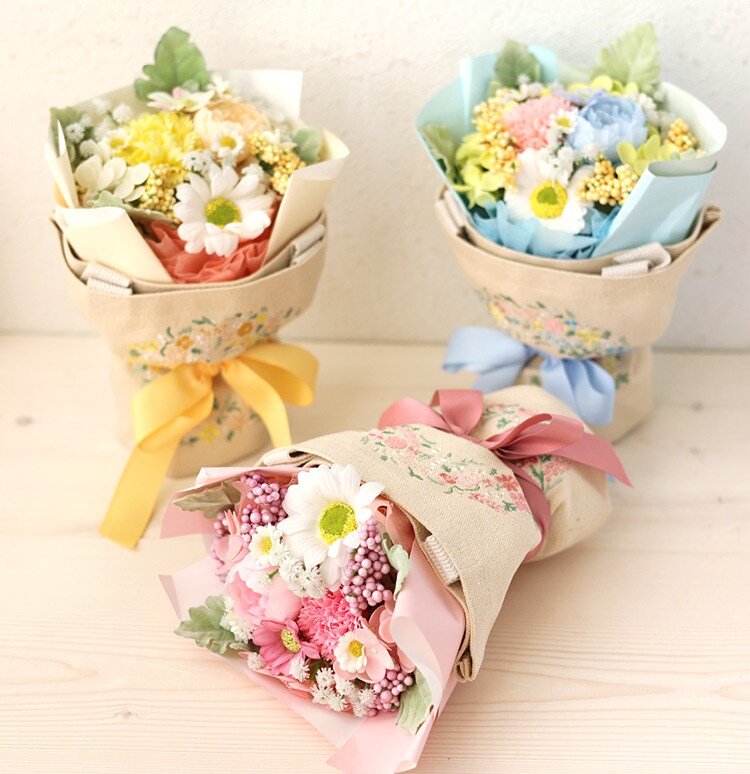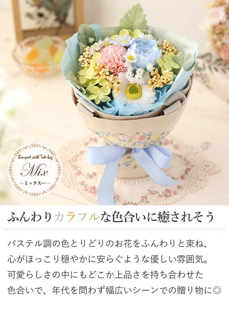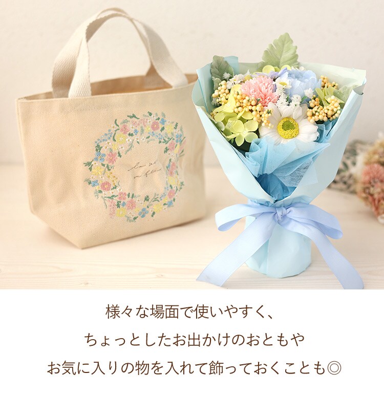 トートバッグ付き ソープフラワー ブーケ「ミックス」【手提げ袋付】 花由