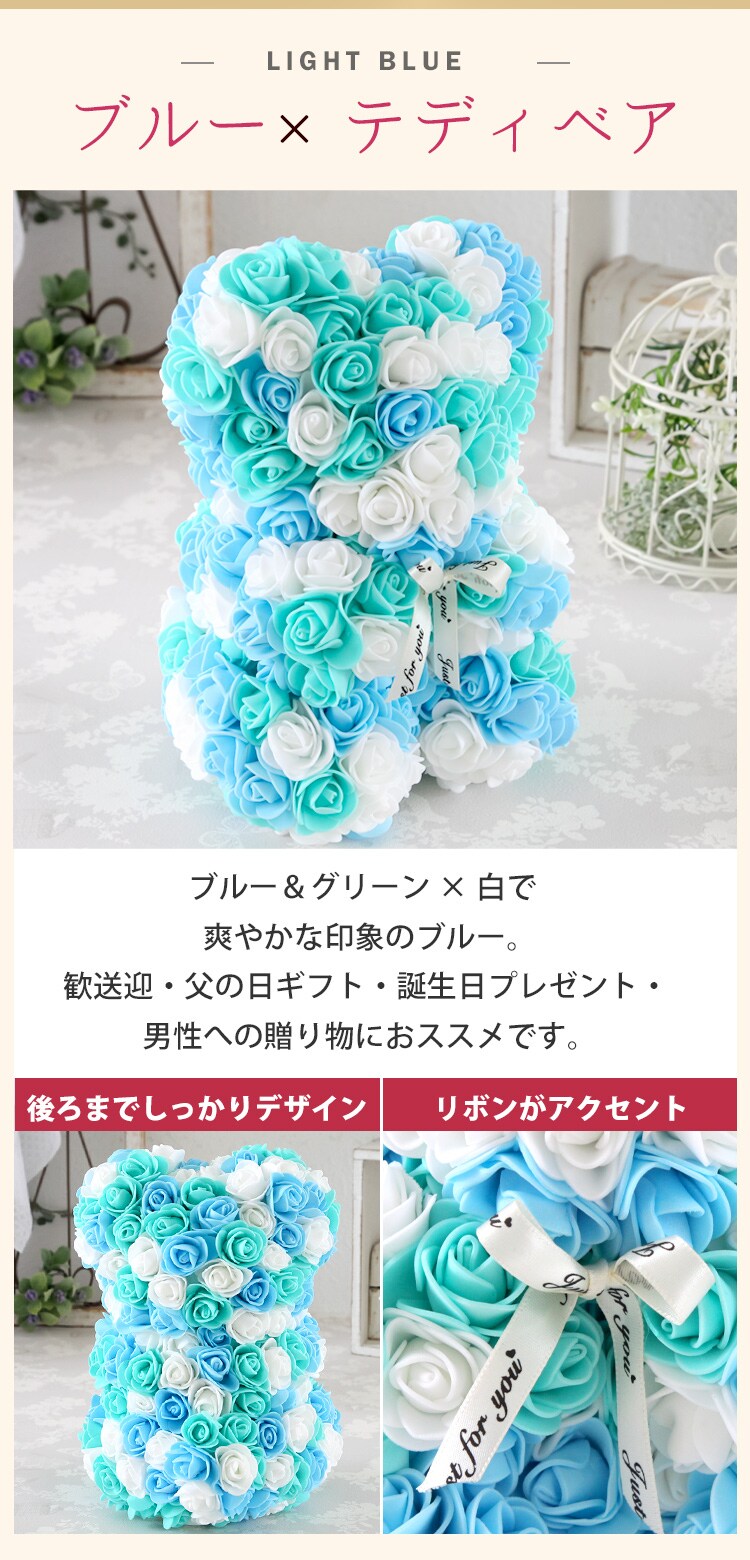 ローズベア Sサイズ 「ブルーmix」 専用クリアケース入り【Especially for Youメッセージカード・袋付】※北海道・沖縄はお届け不可 花由