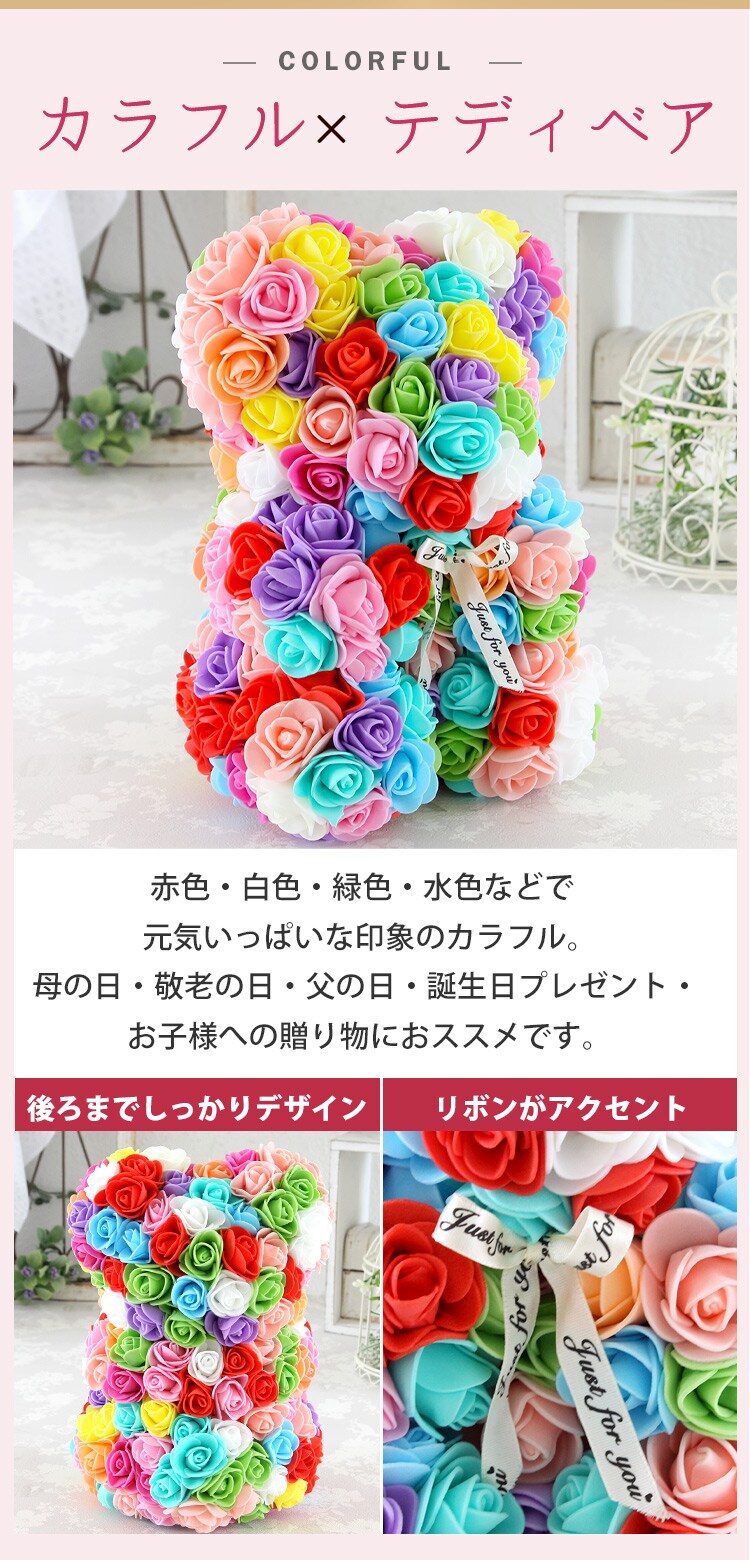 ローズベア Sサイズ 「カラフルmix」 専用クリアケース入り【Especially for Youメッセージカード・袋付】※北海道・沖縄はお届け不可 花由