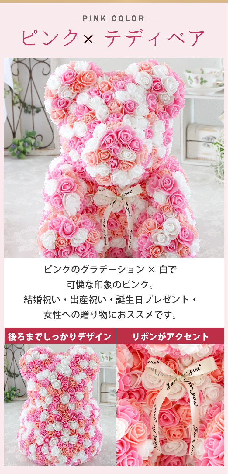ローズベア Lサイズ 「ピンクmix」 専用クリアケース入り【Especially for Youメッセージカード・袋付】※北海道・沖縄はお届け不可 花由