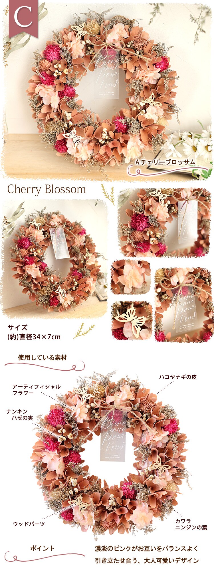 [RSL] ドライフラワー 春のリース Lサイズ「C.チェリーブロッサム」【Especially for Youメッセージカード付】※北海道・沖縄はお届け不可 花由