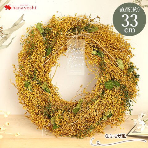 [RSL] ドライフラワー 春のリース Lサイズ「G.ミモザ風」【Especially for Youメッセージカード付】※北海道・沖縄はお届け不可 花由