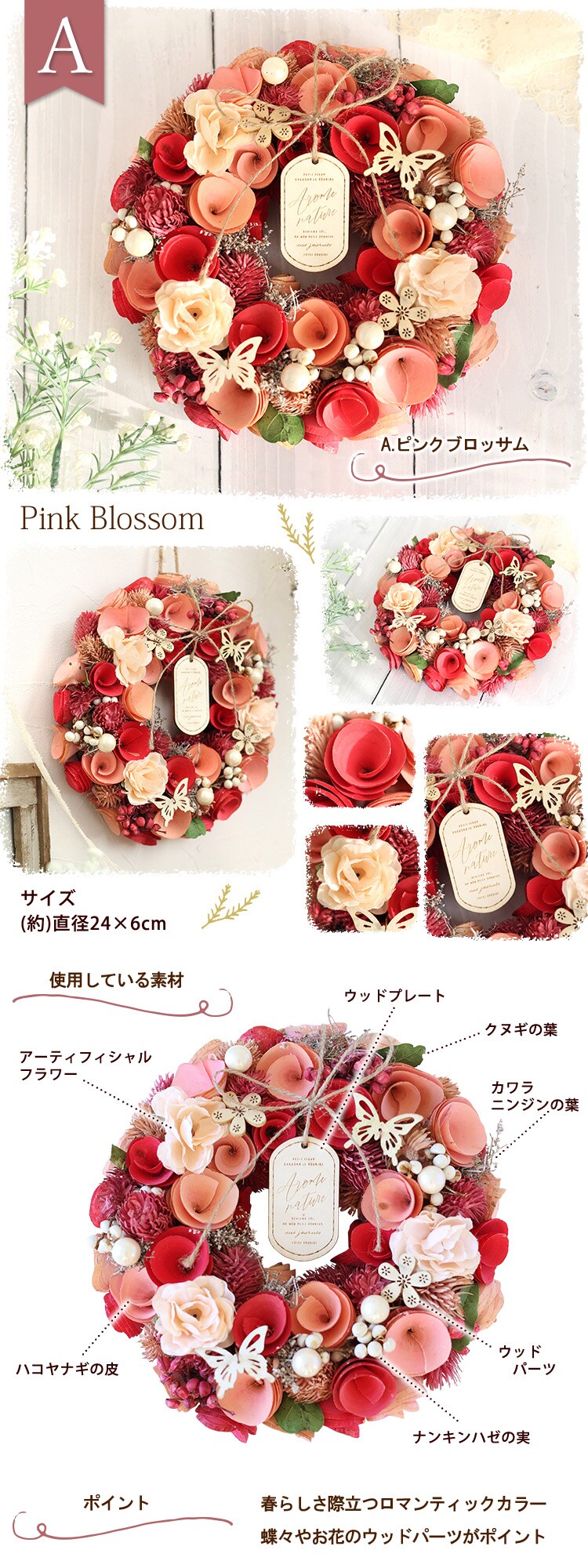 [RSL] ドライフラワー 春のリース Mサイズ「A.ピンクブロッサム」【Especially for Youメッセージカード付】※北海道・沖縄はお届け不可 花由