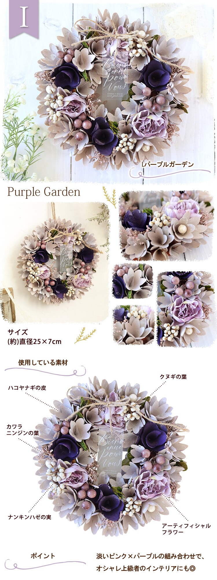 [RSL] ドライフラワー 春のリース Mサイズ「I.パープルガーデン」【Especially for Youメッセージカード付】※北海道・沖縄はお届け不可 花由