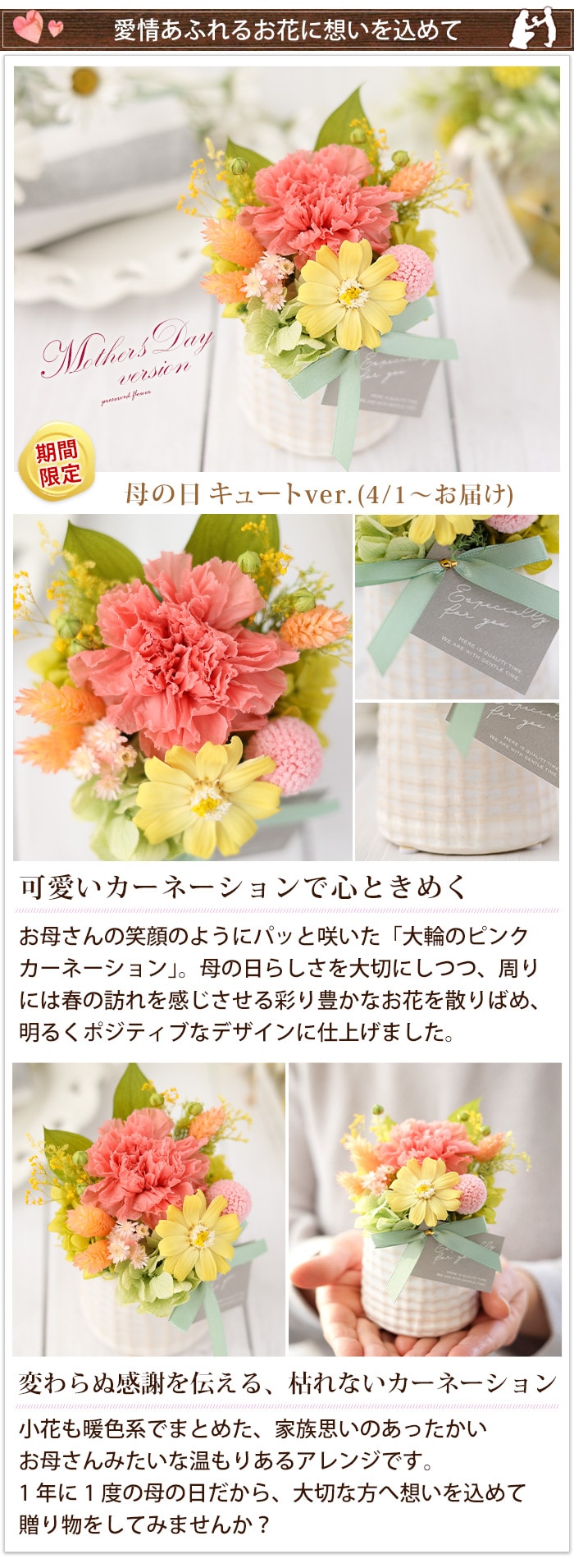 [4/1届~] プリザーブドフラワー パレット「母の日キュートver」【手提げ袋付】花由