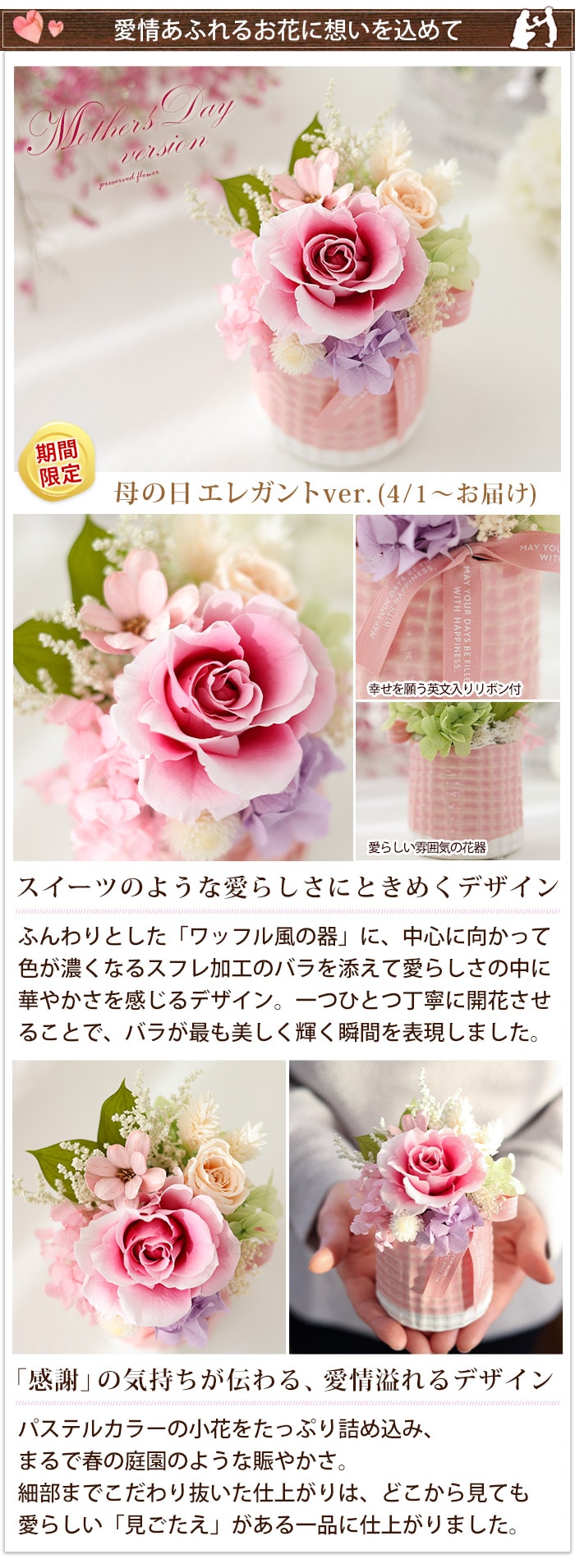 [4/1届~] プリザーブドフラワー パレット「母の日エレガントver」【手提げ袋付】花由