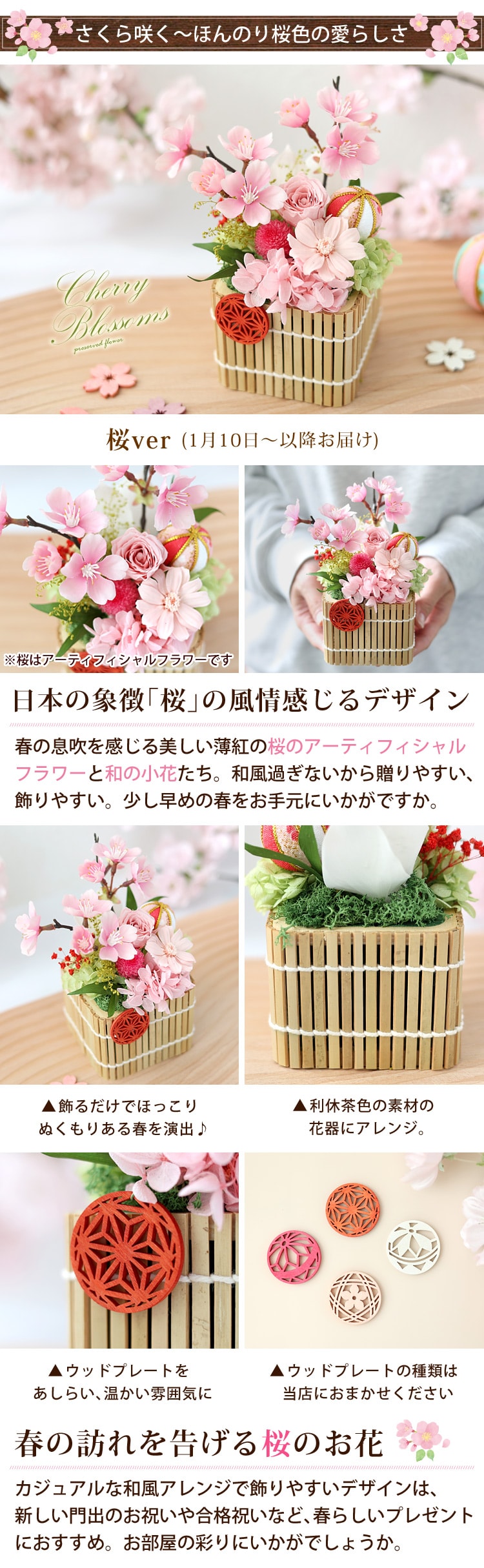 内容 アーティフィシャル桜/プリザーブドローズ/プリザーブドマム/プリザーブドグリーン/