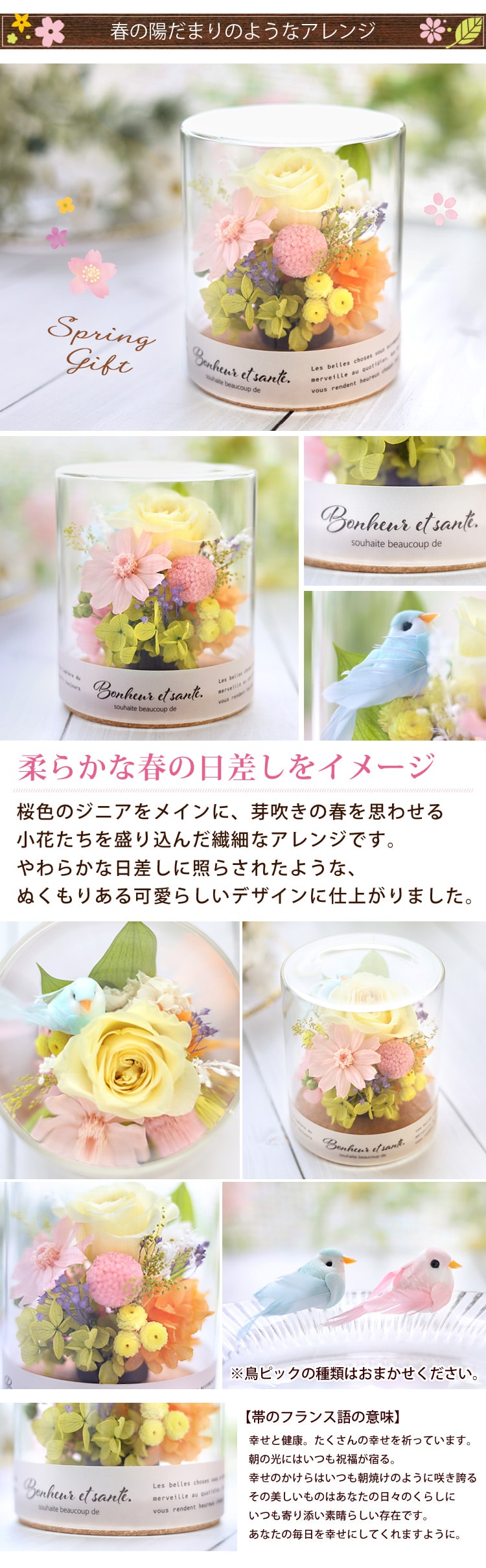 | 内容 | プリザーブドローズ/プリザーブドジニア/プリザーブドアジサイ/プリザーブドグリーン/ ガラスボトル/ラッピング/リボン(デザインは当店におまかせください)/手提げ袋/ ご希望の方にはメッセージカード/取扱説明書/品質保証付リーフレット ※ご注文前にご確認くださいませ ・プリザーブドフラワー・ドライフラワーは生花を加工しているため、製造ロットや個体ごとに、サイズ・色合い・質感などが若干異なります。 ・花材と花材、花材と資材の接触面に多少の色移りがある場合がございます。 ・ご覧のディスプレイによって、お色の見え方には違いがございます。 ・自然素材を手作りで製作しており、配置等が若干異なる場合がございます。 ・自然素材のため、輸送中の振動等により、葉や実、パーツなどが若干落ちる場合がございますが、 こちらの事由による返品・交換はお受けすることができません。予めご了承をお願いいたします。 ※ご覧いただいているデバイスの画面によって、実際の商品と色合いや明るさなどのイメージが異なる場合がございます。 ※入荷状況により、器のデザイン、花の色味・資材の一部が変更になる場合がございます。 |