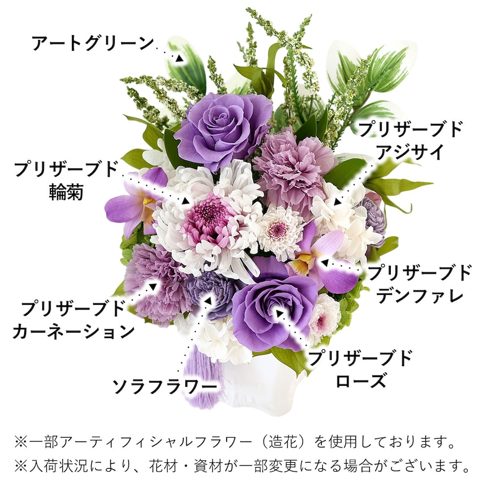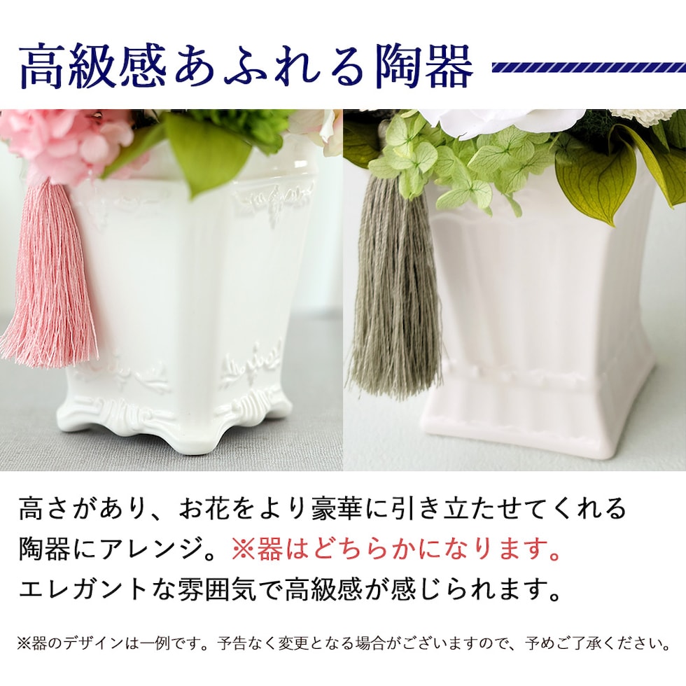 ※入荷状況により、器のデザイン、花の色味・資材の一部が変更になる場合がございます。