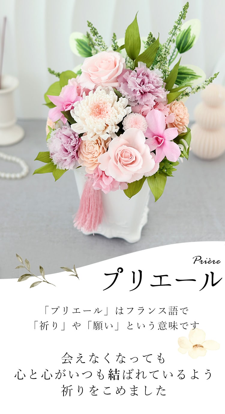 プリザーブドフラワー 仏花 プリエール「ピンク」【手提げ袋付】花由