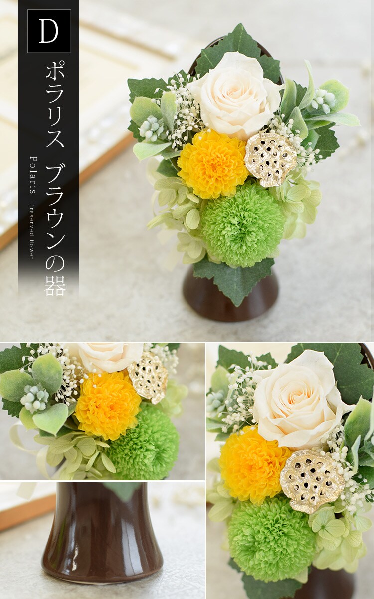 お供え プリザーブドフラワー ポラリス「D.ブラウンの器n2」【手提げ袋付】花由