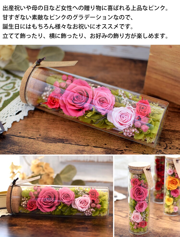 プリザーブドフラワー ボトルフラワー「レッド」【手提げ袋付】花由