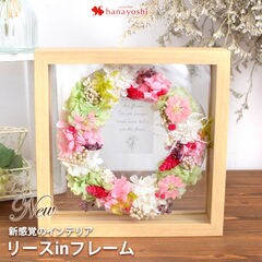 プリザーブドフラワー リース inフレーム「ホワイトn1」【手提げ袋付】 花由
