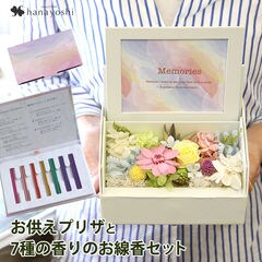 お供え プリザーブドフラワー ペットのお供え メモリアルフレームn1 & メモリアルセット《仏具・花器3点セット》 & レインボーフラワーズ《7種の香りのお線香セット》【手提げ袋付】花由