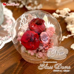 プリザーブドフラワー ガラスドーム バブルドーム LUMIE-ルミエ「ジュリアオレンジn1」【手提げ袋付】花由