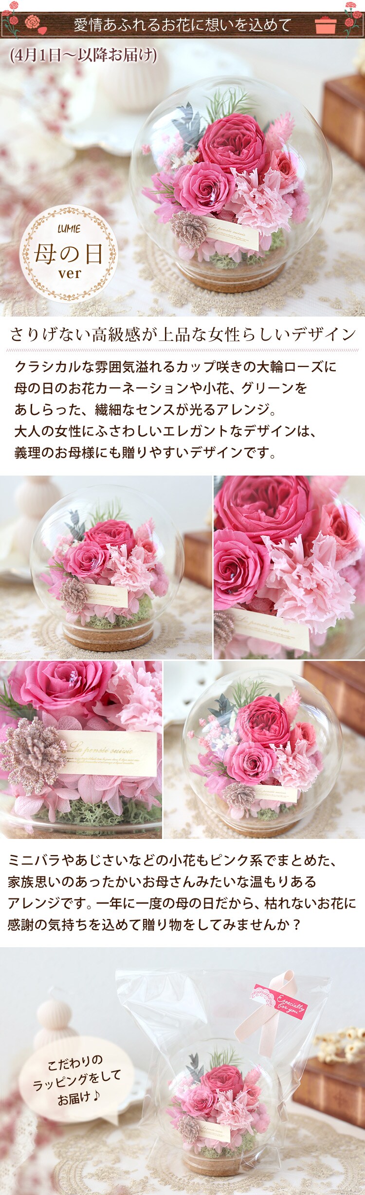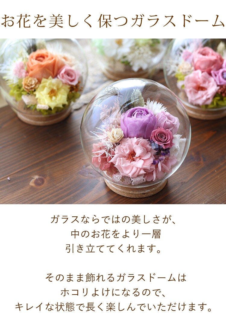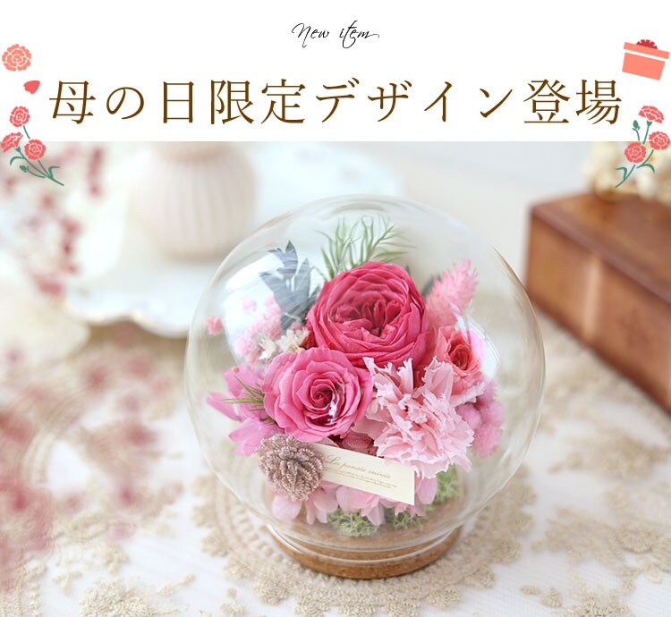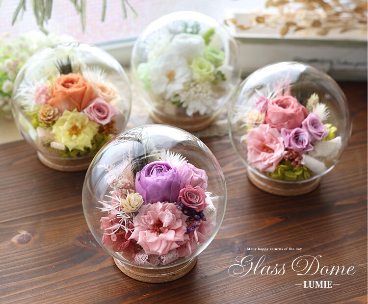 プリザーブドフラワー ガラスドーム バブルドーム LUMIE-ルミエ「母の日ver」【手提げ袋付】花由