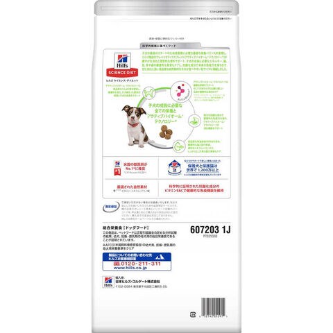 子犬の最高のスタートのため成長期に必要な最適な栄養バランスを実現し、ヒルズ独自のプレバイオティクスブレンド(アクティブバイオーム+テクノロジー*)が健やかな消化と理想的な便をサポート。