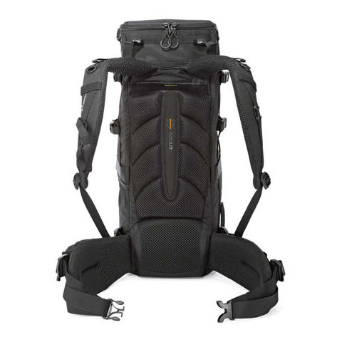 ●背面はアクティブリフトシステムを採用し、ショルダーハーネスを背負いやすい位置に調整可能。重い機材を快適に運ぶために、クッション性のある背面とウエストベルトを採用。