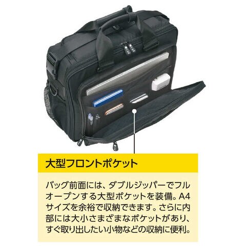 ダブルファスナーで大きく開くフロントポケットを装備。