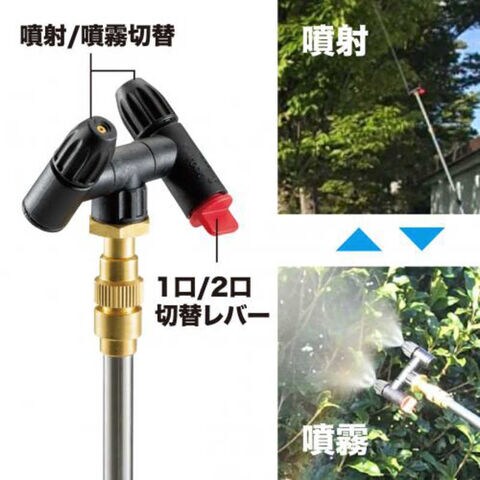 18Vの軽量・軽快タイプタンク容量5L。軽量&コンパクトな肩掛式。手軽に防除、除草、消毒作業が行えます。狙いに合わせて自在にセットできるノズル回転機能先端のノズルキャップを回して噴射/噴霧切替可能。別々に角度調整&1口/2口に切替え可能。「手元でオン/オフ」パドルスイッチ素早くON/OFFできハウス内の散布に便利。ロックオンスイッチ付で連続噴霧も可能。ホース長1.7m肩掛け時に地面に着きにくく、本体を地面に置いても作業しやすい長さです。噴霧管を3ヶ所に収納可能縦置きは表裏に収納でき、上向き、下向きに対応。横置きにも対応。