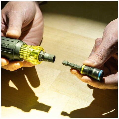 ●交換可能なソケットはシャフトに収納されるため、工具箱などで紛失する可能性を軽減します。