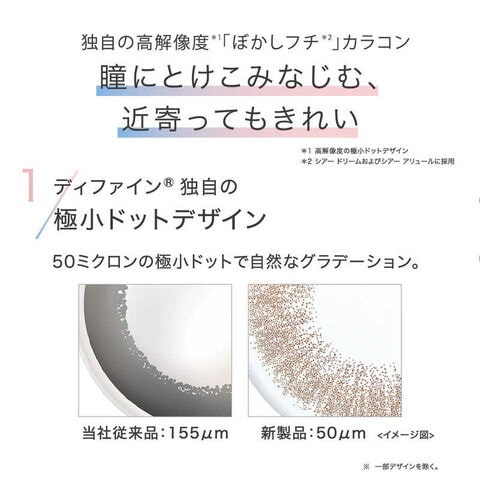 ディファイン (R) 独自の 高解像度 ※1 「ぼかしフチ ※2 」カラコン。