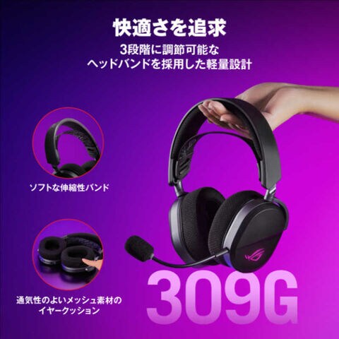 ASUS エイスース ゲーミングヘッドセット (有線/無線) [ワイヤレス(Bluetooth+USB-C) / 両耳 / ヘッドバンドタイプ] ROG/PELTA/BK
